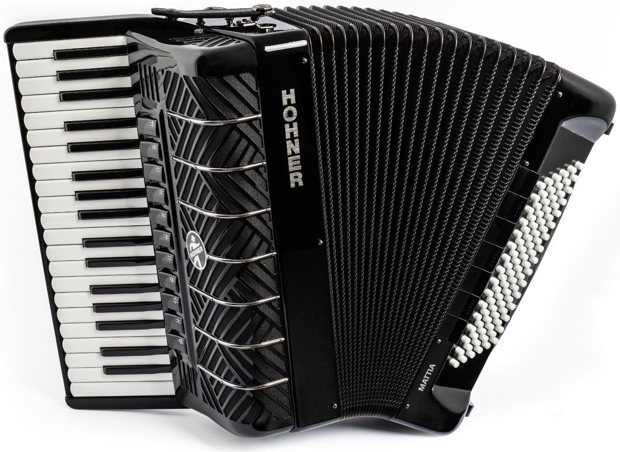 Akordeón zo série Hohner Mattia. Mattia IV 96 kombinuje Taliansku a Nemeckú remeselnú zručnosť a skúsenosti. Výsledkom je vynikajúci nástroj s inovatívnou zvukovou projekciou. Disponuje klaviatúrou vhodnou pre hru rýchlejších techník hry. Akordeón je ideálny pre profesionálnych hudobníkov. Akordeón je dodávaný spolu s odolným robustným kufrom pre dokonalú ochranu pri prenose.