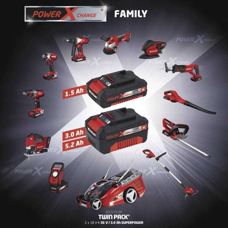 - Systém akumulátorov Power-X-Change poteší tiež vašu peňaženku, keďže je možné zakúpiť výrobky značky Einhell aj bez akumulátora a ušetriť tak podstatnú časť ceny.