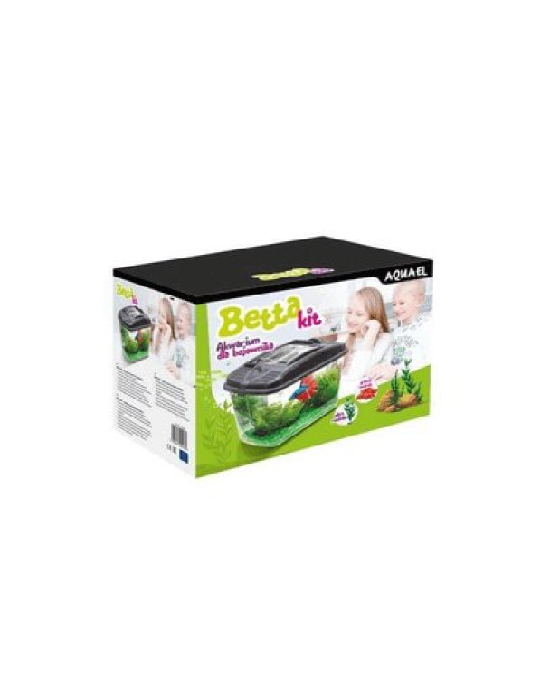 Akváriový set – s krytom, tvar akvária: klasické, plastové vyhotovenie, určený pre akváriové ryby, betty, krevety, malé ryby, rastliny a slimáky, objem 3l, nanoveľkosť, spracovanie: pre začiatočníkov, hmotnosť 1kg, rozmery 17.3×23.7×15.4cm (V׊×H) Chcete si zaobstarať malé akvárium? Vyskúšajte akváriový set Aquael Betta Kit, ktorý predstavuje bezpečnú alternatívu chovu aj jednoduchú manipuláciu pri čistení a kŕmení. Na výrobu bol použitý vysoko odolný materiál voči poškriabaniu. Akváriový set Aquael Betta Kit je vhodný pre ryby Betta, krevety, slimáky a ďalších bezstavovcových obyvateľov akvária aj pre malé vodné rastlinky. Jeho hranaté vyhotovenie nespôsobuje rybkám zmätenosť a dezorientáciu. Priehľadné steny umožňujú pozorovanie vnútorného podvodného sveta. Do akvária Aquael Betta Kit je možné použiť štrk, dekorácie aj malé rastlinky. Plastové veko s otvormi umožňuje výmenu plynov a súčasne zabraňuje nechcenému vyskočeniu rýb z.