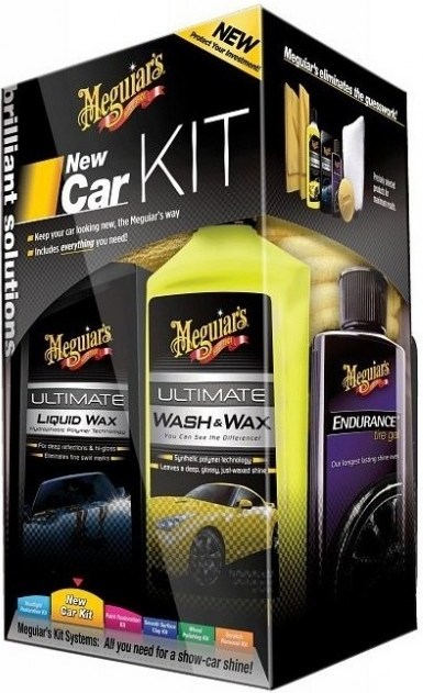 MEGUIARS Sada pre údržbu nového auta G3200 / MEGUIARS New Car Kit G3200.Starostlivosť a nové auto v jednej praktickej sade.Meguiars New Car Kit dodáva majiteľovi nového vozidla presne určené produkty, ktoré potrebujete na čistenie a ochranu vášho vozidla. V nadväznosti na tieto 2 procesy pri pravidelnej údržbe bude vaše auto vyzerať neustále ako nové.1. Krok - Umývanie.Mikrovláknová rukavica na umývanie.Vysokokvalitná mikrovláknová rukavica na bezpečné uvolnenie nečistôt a špiny bez poškriabania laku. Rukavicu po použití umyte a znova použite.Autošampón a vosk Ultimate.Tento autošampón je ideálny spôsob ako umyť, vyleštiť vaše vozidlo a zároveň zvýšiť ochranu laku medzi pravidelným voskovaním.Sušiaci uterák.Vždy po umytí vozidla osušte svoje auto. Zabránite tak samovolnému zaschnutiu vody a následnému vzniku máp na laku vozidla. Exkluzívny sušiaci uterák z mikrovlákna, ktorý oproti bežným mikrovláknovým utierkam absorbuje až trikrát viac vody!2. Krok - Ochrana.Tekutý vosk Ultimate Liquid Wax.Tento vosk je ten najjednoduchší spôsob ako zabezpečiť novém vozidlu dlhodobú ochranu. Tento vosk sa neuveriteľne ľahko používa a výhodou je, že môže byť aplikovaný aj na priamom slnku a na teplý povrch. Ponúka vynikajúci lesk a dlhodobú hydrofóbnu ochranu.Penový aplikátor.Pomocou penového aplikátora aplikujte na lak vozidla tenkú vrstvu tekutého vosku Ultimate Liquid Wax.Mikrovláknová utierka.Mikrovlákno je najlepšie pre leštenie laku. Po zaschnutí tekutého vosku Ultimate Liquid Wax vyleštite lak do vysokého lesku. Uterák je mäkký a veľmi jemný. Umyte a znova použite.Leštenka a ochrana pneumatík.Lak nie je jediná vec, ktorá potrebuje ochranu. S pomocou našej leštenky pre pneumatiky dosiahnete vynikajúcu ochranu a čierny vzhľad pneumatík po celé týždne, dokonca aj cez dážď.Penový aplikátor.Druhý aplikátor použite pre aplikáciu Leštenky na pneumatiky. Ak ste aplikátor raz použili na pneumatiky nikdy ho už nepoužívajte na lak vozidla!Balenie.Meguiars Ultimate Wash & Wax 475 ml.Rukavica z mikrovlákna.Uterák na sušenie Water Magnet.Meguiars Ultimate Liquid Wax 177ml.1x Supreme Shine leštiace mikrovlákno.Endurance® Tire Gel 177ml.2x penový aplikátor Meguiars.