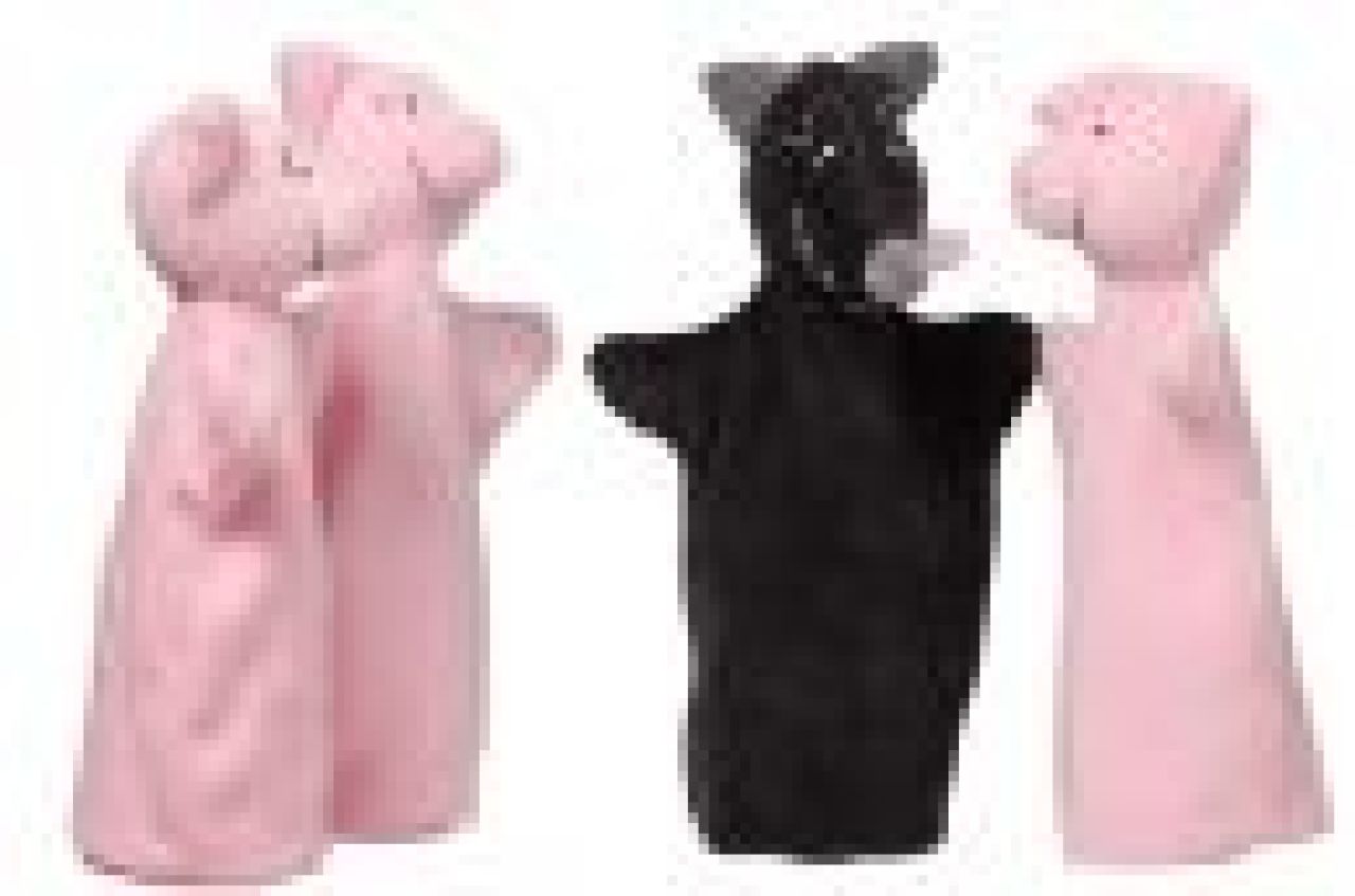 Sada 4 maňásků k hraní pohádky O třech prasátkách. Maňásci jsou baleni v sáčku.Maňásci jsou vysocí 28 cm.Maňásci je vyrobeni z postřiženého froté, vycpávkou je pružné polyesterové vlákno. Lze je prát při teplotě do 30°C a jsou vhodní i pro alergiky!