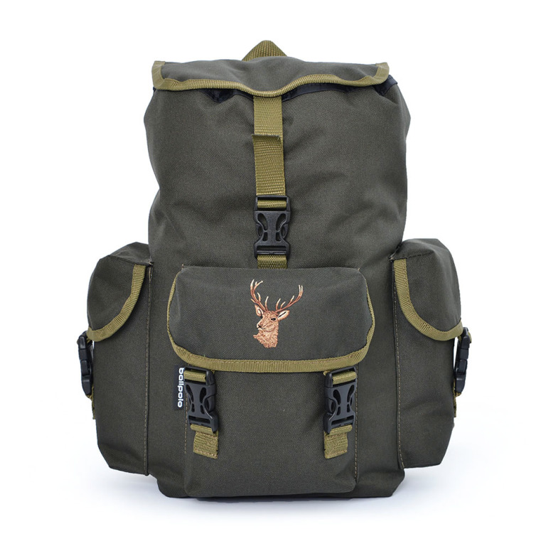 Poľovnícky batoh s vystuženým chrbtom s objemom 20 litr. (kód 98192). Sťahovanie na šnúrku na vrchu batohu, z vnútornej časti čierne umývateľné vnútro. Dve bočné a jedna predná vonkajšia kapsa,anatomicky tvarované, vystužené a nastaviteľné popruhy pre pohodlné nosenie na chrbte. Výšivka jeleňa na prednej strane. Zapínanie na kvalitné mrazuodolné plastové 25 mm spony (až do -20C). Spevnená zadná chrbtová časť a odvetrané nosné ramenné popruhy z extra pevnej sieťoviny. Batoh je možné prať v práčke pri maximálnej teplote 30C. Nosnosť batohu: 6 kg Objem batohu: 20 litrov.