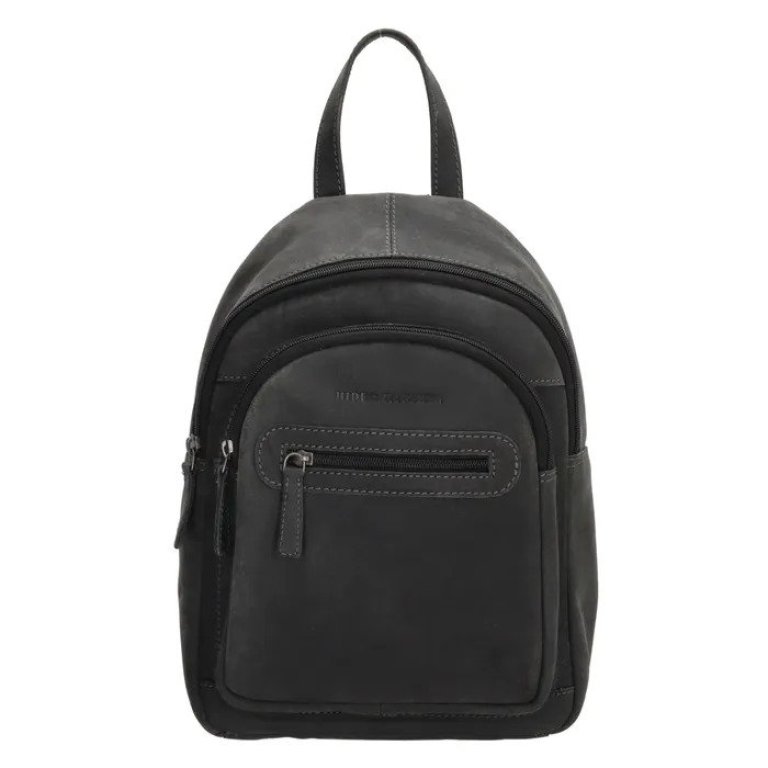 Hide & Stitches Čierny prešívaný batoh z pravej kože „Jupiter“