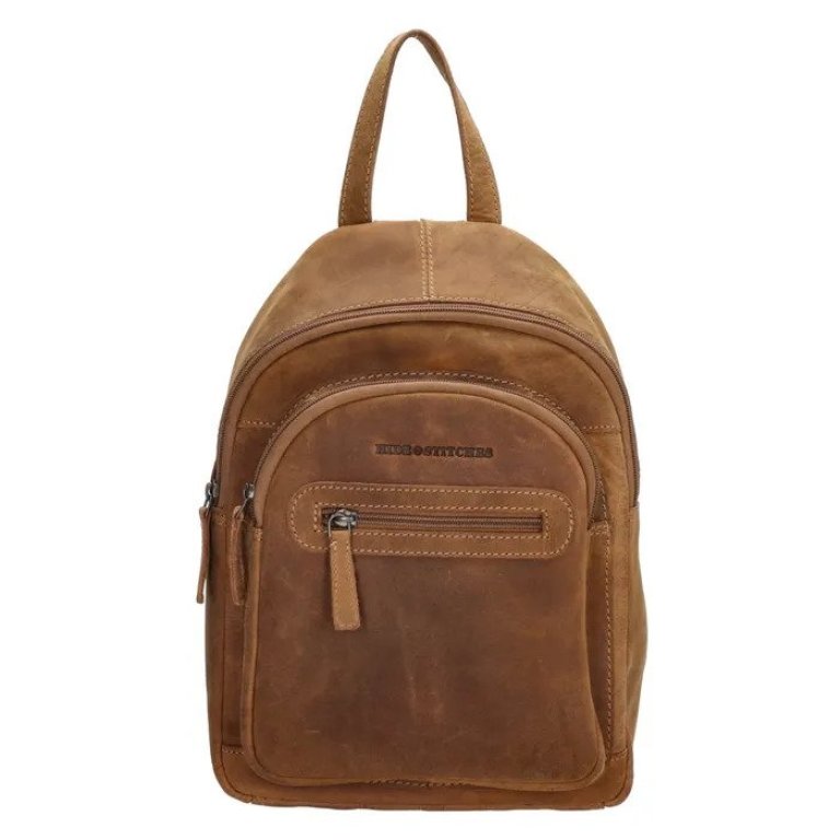 Hide & Stitches Hnedý prešívaný batoh z pravej kože „Jupiter“