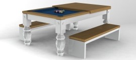 Biliardový stôl Riley Kensington - kombinovaný jedálensko-biliardový stôl, je vyrobený z dýhy, rovný rám obzvláštňujú masívne frézované nohy, jednodielna talianska bridlica o hrúbke 19 mmm. Cena s DPH Rozmery hracej plochy Vonkajšie rozmery biliardu R. Kensington 7ft 3845 € 201,2 x 107,6 cm 236,2 ...viac