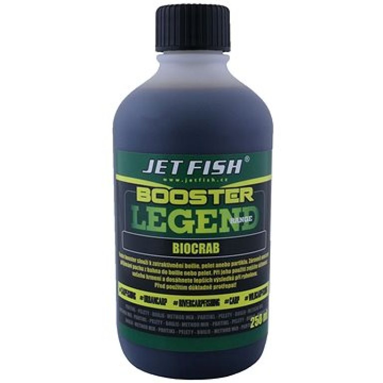Booster – zmes tekutých potravín, ktorá obsahuje základné aminokyseliny a fermentované cukry, pôsobiaci najlepšie na chuťové bunky kapra, výrazne zvyšuje záujem kaprov o vašu návnadu, doplnený o rovnaké lákadlá ako produkty z rady Legend Range.Spoločnosť Jet Fish prináša na trh úplne nové boostery, ktorých vývoj trval niekoľko rokov. Pripravila pre Vás zmes tých najlepších tekutých potráv, ktorá obsahuje základné aminokyseliny a fermentované cukry. Boostery sú navyše doplnené o lákadlá, čo zaisťuje ich lepšiu účinnosť. Inovované boostery výrazne zvýšia záujem kaprov o Vašu návnadu a môžete ich používať počas celého roku.Hlavné prednosti boosterov Jet FishZaručene zvýšia záujem rýbObsahujú lákadláObsahujú základné aminokyseliny a fermentované cukryVýsledok niekoľkoročného vývoja.