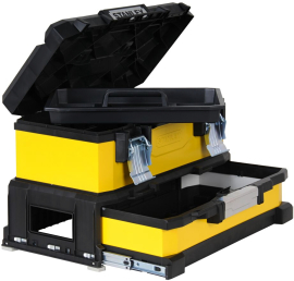 Kombinovaný kovoplastový box na náradie so zásuvkou. Spodná hlboká zásuvka je vhodná pre ukladanie elektrického náradia. Box je možné uzamknúť a vďaka svojej robustnosti je vhodný i pre ťažší náklad.