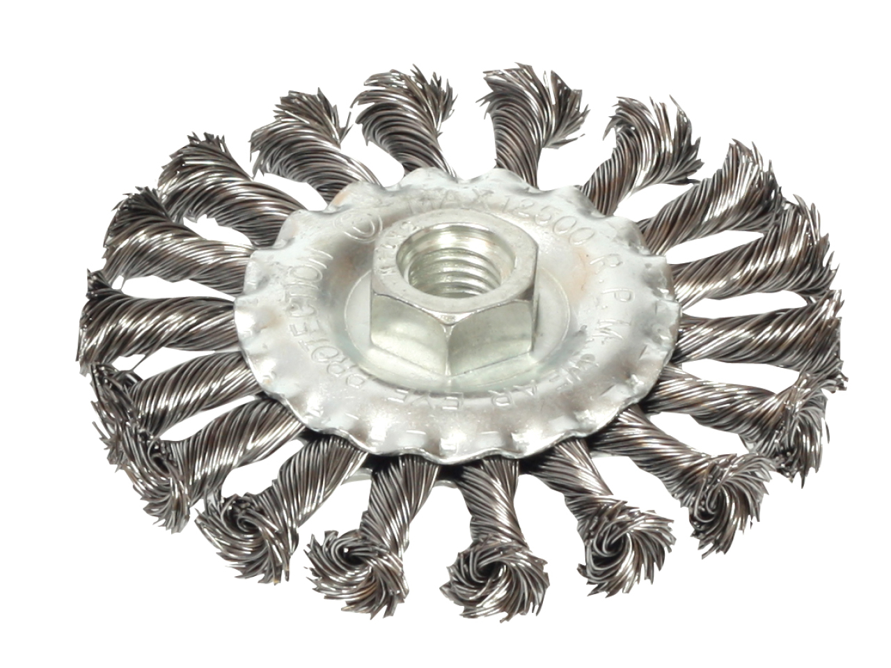 Rotačná kefa - radiálna, COPY - patentovaný drôt 0,5mm; copy sa ani pri extrémnom zaťažení nerozplétají !, priemer 115mm; Závit M14x2mm; Pozinkované telo kefy; Počet drôtov: 1584, Dĺžka drôtu: 27mm; Max. prípustné otáčky: 10000 1 / min; Použitie: odstránenie farby, hrdze, otrepov, zvyškov po zváraní, trosky, zdrsňovanie, čistenie kovových.