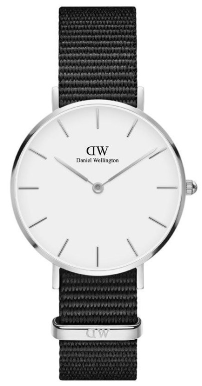 Módne hodinky Daniel Wellington z kolekcie Classic Petite Cornwall. Ideálny doplnok pre ženy uprednostňujúci analógové a guľaté hodinky. K ich skrášleniu naviac výrobca zvolil. Vo vnútri odolného, 6 mm vysokého púzdra, ktoré tvorí kvalitný oceľ nájdete spoľahlivý batériový (quartz) strojček poháňajúci v priemere 32 mm široký ciferník. Ten spoľahlivo chráni odolné minerálne sklíčko. Ako sami vidíte, púzdro zahalila strieborná, ciferník biela a remienok čierna farba. Z hľadiska materiálu vedie textil a jeho dĺžku, v tomto prípade 190 mm si môžete ľahko upraviť na obvod svojho zápästia. Tieto hodinky disponujú stupňom vodotesnosti 3 ATM.