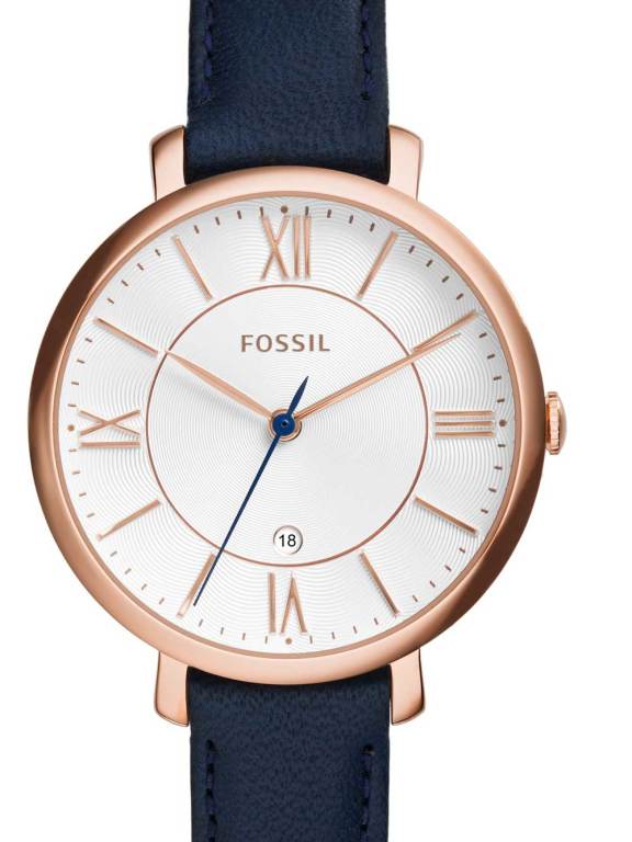 Dámske hodinky analógové, strojček Quartz, priemer ciferníka 36 mm, vodotesnosť 30 m (3 atm), sklíčko minerálne.Podčiarknite ženskú eleganciu luxusným doplnkom v podobe dámskych hodiniek americkej značky FOSSIL JACQUELINE! Hodinky s katalógovým číslom ES3843 sú vyrobené z kvalitnej nehrdzavejúcej ocele v kombinácii s hladkým koženým remienkom modrej farby, ktorý sa jednoducho prispôsobí každému zápästiu. Okrúhly ciferník s bielym podfarbením a decentnými rímskymi indexmi je uložený v ružovozlatom puzdre minimalistického vzhľadu. Všimnite si sekundové ručičky v modrej farbe, ktorá perfektne ladí s remienkom a hodinky tak pôsobia veľmi sofistikovane a nadčasovo. Nechýba ani minerálne sklíčko, ktoré zaistí vyššiu odolnosť voči poškriabaniu. Hodinky FOSSIL JACQUELINE s batériovým strojčekom Quartz a ukazovateľom presného dňa v mesiaci sa postarajú o prehľadné zobrazenie času, nech už ste kdekoľvek. O hodinky sa navyše nemusíte obávať pri umývaní rúk alebo v.
