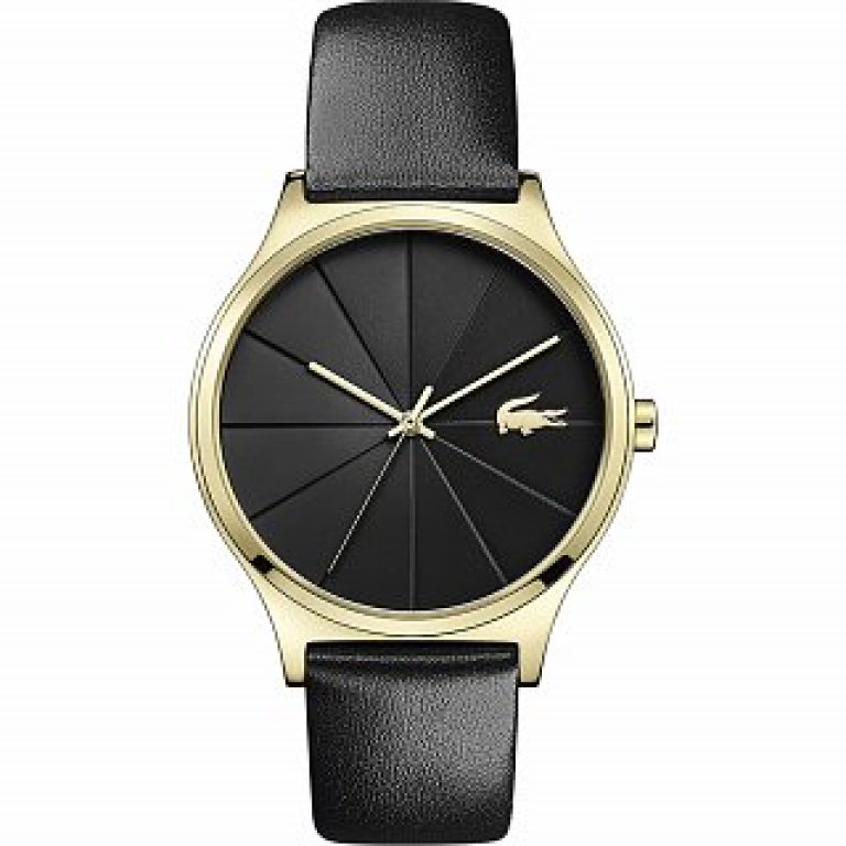 Klasické hodinky Lacoste z kolekcie Nikita. Ideálny doplnok pre ženy uprednostňujúci analógové a guľaté hodinky. K ich skrášleniu naviac výrobca zvolil. Vo vnútri odolného, 8 mm vysokého púzdra, ktoré tvorí kvalitný oceľ nájdete spoľahlivý batériový (quartz) strojček poháňajúci v priemere 38 mm široký ciferník. Ten spoľahlivo chráni odolné minerálne sklíčko. Ako sami vidíte, púzdro zahalila zlatá, ciferník čierna a remienok čierna farba. Z hľadiska materiálu vedie kože a jeho dĺžku, v tomto prípade 190 mm si môžete ľahko upraviť na obvod svojho zápästia. Tieto hodinky disponujú stupňom vodotesnosti 3 ATM.