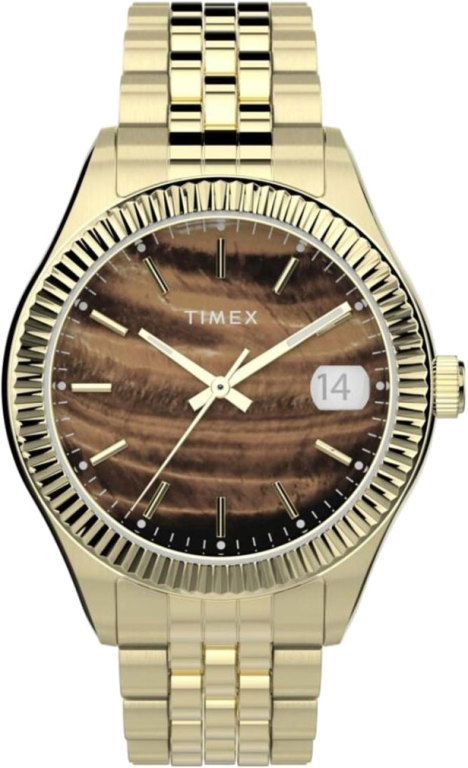 Dámske nadčasové hodinky TIMEX TW2T87100 s dátumomOznačenie hodiniek:TIMEX TW2T87100Modelová rada:HERITAGEUrčenie hodiniek:Dámske hodinkyZobrazenie času:AnalógovéStrojček hodiniek:Quartzový analógPohon hodiniek:BatériaPúzdro hodiniek:Ušľachtilá oceľRemienok hodiniek:Ušľachtilá oceľZapínanie remienka:Trojdielna skladacia spona s tlačidlom, Logo TIMEXPovrchová úprava:ZlatenieSklo hodiniek:MinerálneCiferník hodiniek:Hnedá farba, Textúra, Ručičky/Indexy - zlatá farba, Logo TIMEXOdolnosť voči vode:WR 50 m, 5 ATMRozmery hodiniek:Priemer púzdra: 34,00 mmZáruka na hodinky:2 rokyBalenie hodiniek:TIMEX krabičkaFunkcie:Dátumovka - zobrazuje deň v mesiaci, Umiestnená na pozícií 3WR 50 m V cene je zahrnuté:- Poštovné a balné zdarma v rámci SR - Slovenská pošta / kuriér UPS- Záruka 24 mesiacov- Komplexný záručný a pozáručný servis, ktorý zabezpečuje firma TIME IN - predaj hodín- Originál balenie- Originál záručný list- Návod na použitie v slovenčine.Autorizovaný predaj:Sme autorizovaný predajca hodiniek TIMEX v SR, s veľkou kolekciou a skladom v našej kamennej predajni.Prosím vezmite na vedomie, že záruka a popredajný servis hodiniek značky TIMEX sú poskytované len zákazníkom vlastniacim hodinky zakúpené u autorizovaného predajcu.Internetový obchod www.inhodinky.sk používa vlastné texty a popisy k produktom. Podklady a technické parametre sú výhradne od autorizovaných dodávateľov.Technické zmeny a omyly vyhradené.Veľkosti obrázkov nezodpovedajú pôvodnej veľkosti hodiniek. Farby sa môžu mierne líšiť od originálu.