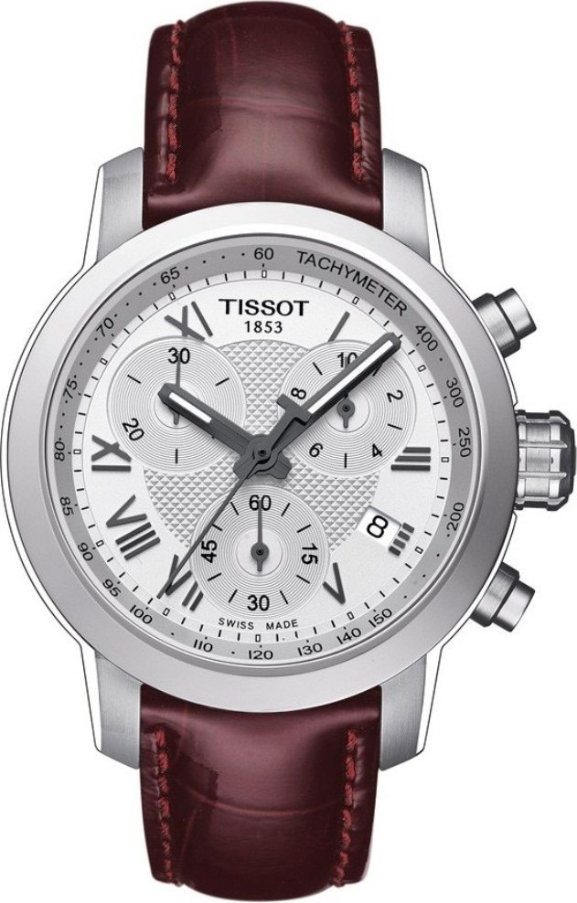 Označenie hodiniek:.Dámske hodinky TISSOT PRC 200 T055.217.16.033.01 QUARTZ CHRONOGRAPH LADY.Zobrazenie hodiniek:.Analógové.Strojček hodiniek:.ETA G15.211, Chronograf.Pohon hodiniek:.Quartz, batéria.Materiál púzdra hodiniek:.Nerez oceľ.Materiál remienka hodiniek:.Koža - hnedá farba.Zapínanie remienka hodiniek:.Skladacia spona.Povrchová úprava hodiniek:.Matná/Leštená oceľ.Sklo hodiniek:.Zafírové, antireflexné.Ciferník hodiniek:.Strieborná farba, Čierne ručičky a rímske číslice.Vodeodolnosť:.200m, 20ATM.Rozmery hodiniek :.Priemer púzdra: 35,00mm, Hrúbka púzdra: 12,00mm, Hmotnosť: 62,00g.Záruka:.2 roky.Balenie:.TISSOT krabička.Špeciálne funkcie:.Chronograf.ADD funkcia.SPLIT funkcia.Dátumovka na pozícii 4.Tachymeter.Luminiscenčné ručičky.Zadné veko na závit.Funkcia ADD.ADD funkcia umožňuje odmerať po sebe nasledujúce časové úseky, pričom nie je potrebné počítadlá medzi dvomi udalosťami vynulovať. Každý nasledujúci čas sa pripočíta k predchádzajúcemu.Funkcia SPLIT-TIME.SPLIT-TIME funkcia umožňuje zastaviť ručičky na prečítanie medzičasu, bez prerušenia počítania. Pri opätovnom spustení počítadlá "dobehne" čas a ručičky ukážu celkový uplynulý čas.V cene je zahrnuté:.Poštovné a balné zdarma v rámci SR.1,40 EUR/.Záruka 24 mesiacov.Komplexný záručný a pozáručný servis, ktorý zabezpečuje firma TIME.IN - predaj hodín.Originál balenie.Originál záručný list.Certifikát originality s unikátnym číslom.Návod na použitie v slovenčine.Sme atorizováný predajca hodiniek TISSOT v SR, s veľkou kolekciou a skladom v našej kamennej predajni.Prosím vezmite na vedomie, že medzinárodná záruka a popredajný servis hodiniek značky TISSOT sú poskytované len zákazníkom vlastniacim hodinky zakúpené len u autorizovaného predajcu.Darček: originál šiltovka TISSOT.