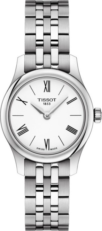 Dámske hodinky TISSOT T063.009.11.018.00 TRADITION 5.5 LADY so super tenkým puzdrom len 5,5 mm.Označenie hodiniek:.TISSOT T063.009.11.018.00.Modelová rada:.T-Classic, TRADITION 5.5 LADY.Určenie hodiniek:.Dámske hodinky.Zobrazenie času:.Analógové.Strojček hodiniek:.ETA E61.031 - Swiss made.Pohon hodiniek:.Batéria.Púzdro hodiniek:.Ušľachtilá oceľ 316L.Remienok hodiniek:.Ušľachtilá oceľ 316L.Zapínanie remienka:.Butterfly skladacia spona s tlačidlami, Logo TISSOT.Povrchová úprava:.Leštená/Brúsená oceľ.Sklo hodiniek:.Zafírové, Odolné voči poškriabaniu.Ciferník hodiniek:.Podklad - biela farba, Ručičky - strieborná farba, Rímske číslice/indexy - čierna farba, Logo TISSOT.Odolnosť voči vode:.30 m, 3 ATM.Rozmery hodiniek :.Priemer púzdra: 25,00 mm, Hrúbka púzdra: 5,20 mm.Hmotnosť hodiniek:.49,00 g.Záruka na hodinky:.2 roky.Balenie hodiniek:.TISSOT krabička.Funkcie hodiniek:.Základné.EOL (end of life) - indikátor konca životnosti batérie.WR 30 m.V cene je zahrnuté :.Poštovné a balné zdarma v rámci SR.Záruka 24 mesiacov.Komplexný záručný a pozáručný servis, ktorý zabezpečuje firma TIME. IN - predaj hodín.Originál balenie.Originál záručný list.Certifikát originality s unikátnym číslom.Návod na použitie v slovenčine.Autorizovaný predaj:.Sme autorizovaný predajca hodiniek TISSOT v SR, s veľkou kolekciou a skladom v našej kamennej predajni.Prosím vezmite na vedomie, že záruka a popredajný servis hodiniek značky TISSOT sú poskytované len zákazníkom vlastniacim hodinky zakúpené u autorizovaného predajcu.Internetový obchod www.inhodinky.sk používa vlastné texty a popisy k produktom.Podklady a technické parametre sú výhradne od autorizovaných dodávateľov.Technické zmeny a omyly vyhradené.Veľkosti obrázkov nezodpovedajú pôvodnej veľkosti hodiniek. Farby sa môžu mierne líšiť od originálu.