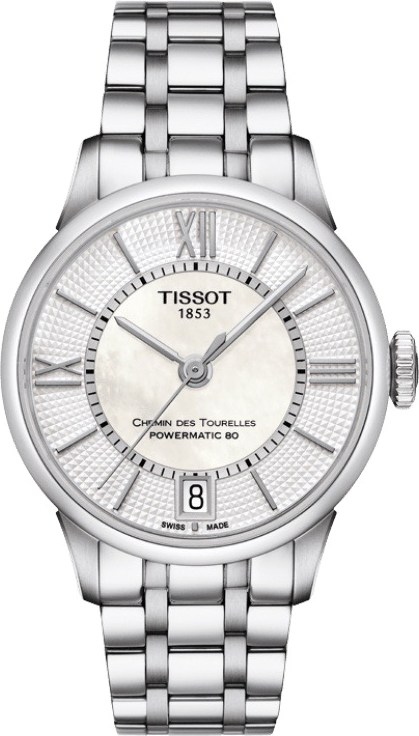 Dámske hodinky TISSOT T099.207.11.118.00 CHEMIN DES TOURELLES Automatic Lady.Označenie hodiniek:.TISSOT T099.207.11.118.00 CHEMIN DES TOURELLES Automatic Lady.Strojček hodiniek:.Automatic, Powrmatic 80 - výkonová rezerva až 80 hodín.Púzdro hodiniek:.Nerez oceľ.Remienok hodiniek:.Nerez oceľ.Povrchová úprava:.Leštená / Matná oceľ.Sklo hodiniek:.Zafírové.Ciferník hodiniek:.Perleť / Biela farba - textúra, Ručičky a rímske číslice / indexy - strieborná farba.Odolnosť voči vode:.WR 50, 5 ATM.Rozmery, hmotnosť hodiniek :.Priemer púzdra: 32,00 mm, hrúbka púzdra: 10,69 mm, hmotnosť: 83,00 g.Záruka na hodinky:.2 roky.Balenie hodiniek:.TISSOT krabička.Funkcie hodiniek:.Dátumovka na pozícii 6.Sekundová ručička.WR 50.Automatické hodinky značkyTISSOT® čerpajú energiu z oscilujúceho závažia, ktoré je aktivované prirodzeným pohybom vašej ruky. Tým je zabezpečené naťahovanie hodiniek. Automatické hodinky nepotrebujú batériu. V cene je zahrnuté:.Poštovné a balné zdarma v rámci SR.. Slovenská pošta alebo kuriér UPS.. Záruka 24 mesiacov.. Komplexný záručný a pozáručný servis, ktorý zabezpečuje firma TIME IN.. predaj hodín.. Originál balenie.. Originál záručný list.. Certifikát originality s unikátnym číslom. Sme autorizovaný predajca hodiniek TISSOT v SR s veľkou kolekciou a skladom v našej kamennej predajni.Prosím vezmite na vedomie, že medzinárodná záruka a popredajný servis hodiniek značky TISSOT sú poskytované len zákazníkom vlastniacim hodinky zakúpené len u autorizovaného predajcu.Internetový obchod www.inhodinky.sk používa vlastné texty a popisy k produktom.Podklady a technické parametre sú výhradne od autorizovaných dodávateľov.Technické zmeny a omyly vyhradené.Veľkosti obrázkov nezodpovedajú pôvodnej veľkosti hodiniek.Farby sa môžu mierne líšiť od originálu. .