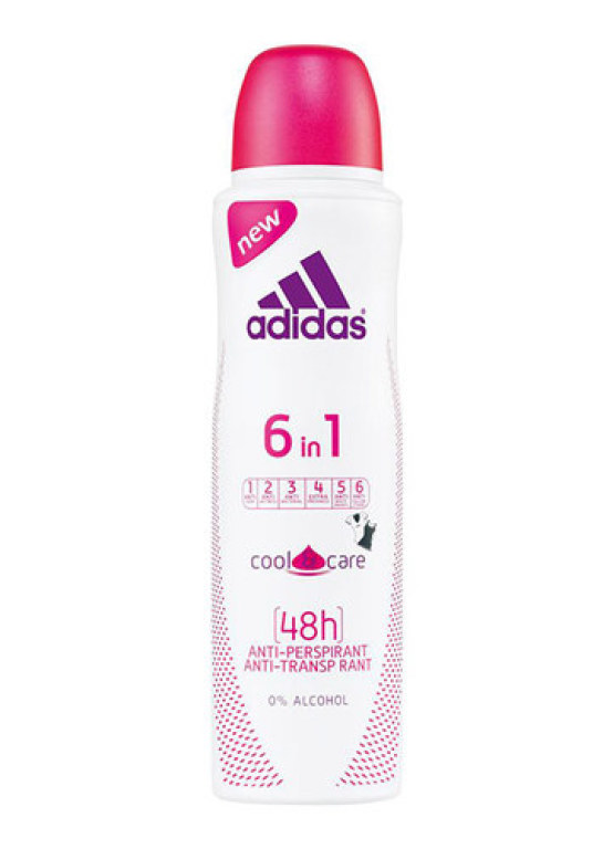 Adidas Cool & Care 48h 6v1 antiperspitant dezodorant sprej pre ženy 150 ml, Objevte antiperspirant Adidas Cool & Care. Jeho jedinečné složení bylo vyvinuto ve spolupráci s vrcholovými sportovci: - Ochrana proti pocení až na 48 hodin. - Osvěží tě na celý den. - Šetrně pečuje o pokožku. - Rychle schnoucí složení. - Nezpůsobuje bílé a žluté skvrny na oblečení a pokožce. - 0% alkoholu - respektuje pH pokožky - dermatologicky testované. Dámský antiperspirant deodorant. Aplikujte na pokožku ze vzdálenosti 15 cm. Nádobka je pod tlakem. Nevystavujte slunečnímu záření a teplotám nad 50°C. Ani vyprázdněnou nádobku neprorážejte a nevhazujte do ohně. Nestříkejte do otevřeného ohně nebo na žhavé předměty. Uchovávejte mimo dosah zdrojů zapálení - Zákaz kouření. Uchovávejte mimo dosah dětí. Neaplikujte vnitrně a na narušenou pokožku. V případě podráždění přerušte používání. Nevstřikovat do očí. Nevhodné pro intimní hygienu. Používejte výhradně k určenému účelu. Složení: Butane-Isobutane-Propane, Aluminum Chlorohydrate, Cyclopentasiloxane, C12-15 Alkyl Benzoate, Parfum/Fragrance, Disteardimonium Hectorite, Dimethicone, Caesalpina Spinosa Gum, Hydrogenated Polydecene, Sorbitan Sesquioleate, Limonene, Hexyl Cinnamal, Sucrose Stearate, Butylphenyl Methylpropional, Silica, Citronellol, BHT, Coumarin, Alpha-Isomethyl Ionone, Gossypium Herbaceum (Cotton) Powder.