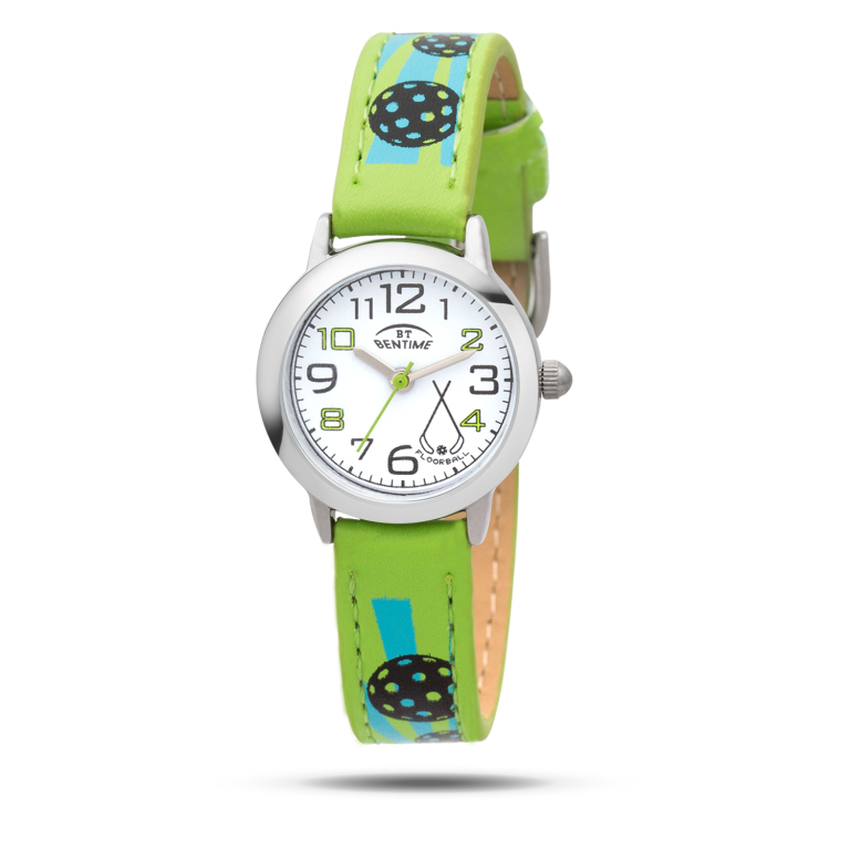 Detské hodinky Bentime, s koženným remienkom v zelenej farbe.