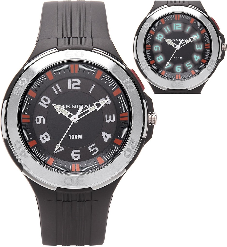 Pánske hodinky Cannibal CJ211-05 sú zaujimavý model, ktorý je vyrobený tvrdeného plastu v kombinácii s kovovou lunetou. Luneta je pevná a je opatrená arabskými číslicami. Na bielom ciferníku vynikajú tmavo modré arabské číslice a strieborné ručičky, ktoré sú pokryté luminiscenciou. Nad korunkou sa nachádza tlačidlo, ktorým spustíte osvetlenie. Tento model je vhodný na bežné denné nosenie.
