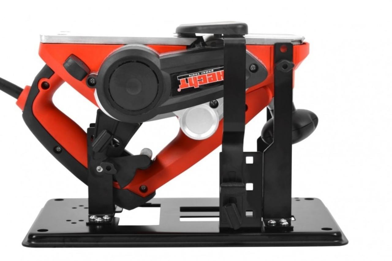 Pracovný stojan pre uchytenie hoblíka HECHT 1790. Umožní používať hoblík ako malú základnú hobľovačku. Stojan je po pripevnení hoblíka stabilný a pevný. Nože hoblíka sú ukryté pod krytom, ktorý je otočný na pružine. Pri práci je tak minimalizované riziko úrazu, keď sa však ľahko odsunie posúvaným hobľovaným ...viac