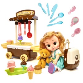 DR KIK Bábika cukrárka s vozíkom 32 cm