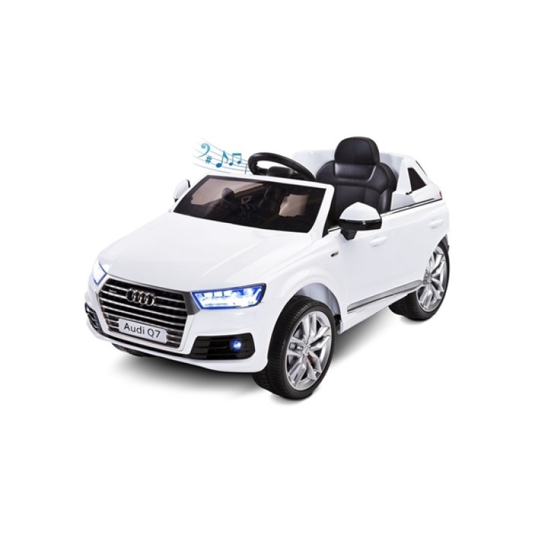Nádherné a štýlové detské elektrické autíčko AUDI Q7. Auto skvele jazdí a má 2 silné motory. Jazdí zošliapnutím pedálu u vodiča. Smer jazdy určíte tlačidlom vpred / vzad, ktoré je pri volante. Auto má veľa funkcií ako je tlačítko pre zapnutie vozidlá, zdierka pre MP3/SD, tlačítko pre zmenu rýchlosti (pomaly alebo rýchlo), indikátor stavu batérie, tlačítko pre reguláciu hlasitosti hudby a spätné zrkadlá. Na volante je tlačítko, ktoré po stlačení hrá melódie a tlačitko pre klaksón. Kvalitné kolesá, pevná a kvalitná konštrukcia, LED osvetlenie, to všetko je zárukou bezpečia pre Vaše deti. Batéria sa jednoducho nabíja nabíjačkou. Po nabití dieťa môže jazdiť cca 2 hodiny. Rodič sa môže diskrétne postarať o bezpečnosť dieťaťa pomocou diaľkového ovládača. S autíčkom si užijete veľa srandy a zábavy.Charakteristika:- určené pre deti od 3-8 rokov do hmotnosti 30 kg- 2 silné motory 12V 35W-jeden- batéria 12V 7Ah- rýchlosť 3-5 km/h- pedál u vodiča ovládajúci jazdu- pohodlné sedadlo s bezpečnostným pásom- tlačítko pre zapnutie vozidlá- tlačítko pre zmenu rýchlosti (pomaly alebo rýchlo)- tlačítko, ktoré ovláda jazdu vpred / vzad- LED osvetlenie- indikátor stavu batérie- tlačítko na volante, ktoré po stlačení hrá melódie- zdierka pre pripojenie MP3/SD- jazdí na nabíjaciu batériu- nabíjačka vtup-AC220V, 50Hz, výstup-DC12V 1000mA- kvalitné kolesá s krytmi- klaksón- diaľkový ovládač, bateie 2 ks-AA 1,5VRozmery:- čas dobíjania batérie: 8-10 hod- typ batérie: 12V 7Ah- rýchlosť auta 3-5 km/h- doba prevádzky 2 hod- motor: 12V 35W - 2 motoryOtvorme svet detskej fantázie s úžasným autíčkom AUDI Q7. Rozmery. cca 112x51x57 cm.