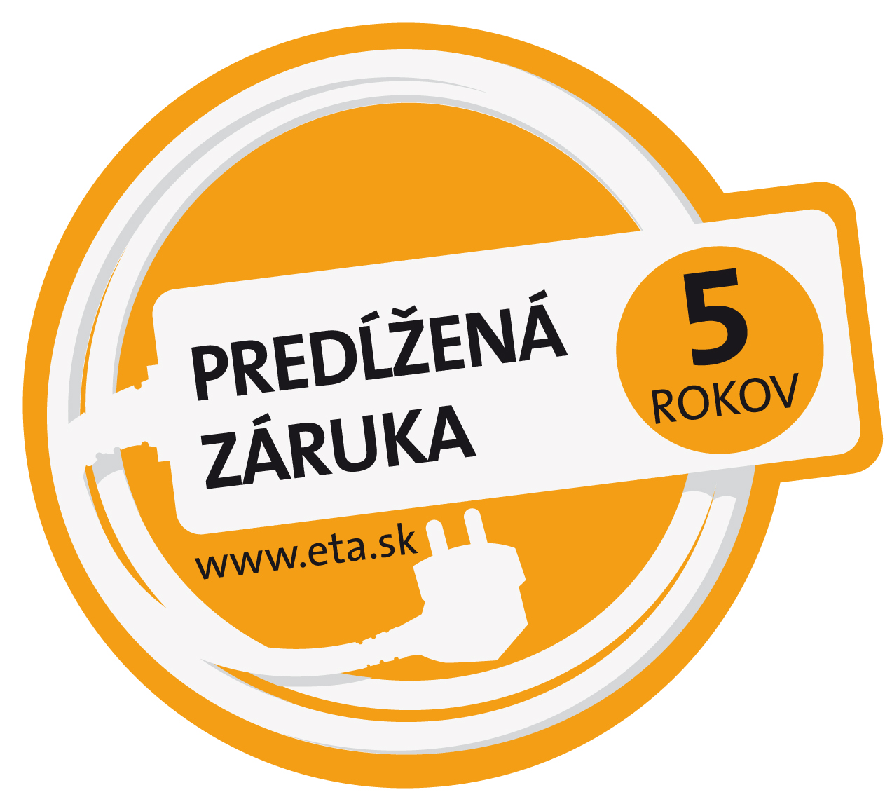 ETA na tento produkt navyše poskytuje predĺženú záruku 5 rokov na topné teleso. Predĺženú záruku si registrujte TU .