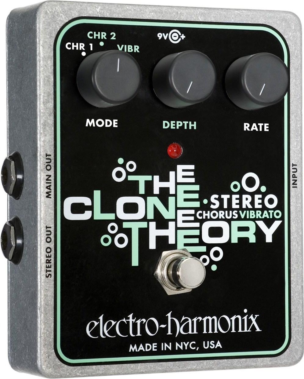 Gitarový stereo chorus Clone Theory ponúka kombináciu dvoch chorusov a vibráto efektu. Nastavuje sa pomocou troch potenciometrov: Mode (výber efektu), Depth (hĺbka efektu), Rate (rýchlosť kmitania efektu). Konektory: 6,3 mm vstupný jack, 6,3 mm hlavný výstup, 6,3 mm stereo výstupný jack, vstup pre adaptér. ...viac