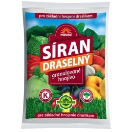 Síran draselný AGRO 25kg Síran draselný Forestina Profi Agro je univerzálne draselné hnojivo bez chloridov určené k základnému jesennému hnojeniu alebo na hnojenie skoro na jar a na prihnojovanie. Síran draselný sa hodí najmä pre rastliny citlivé na chlór, ale aj pre všetky ostatné druhy rastlín. Podporuje vyššiu tvorbu cukrov v plodu a zvyšuje klíčivosť semien. Obsahuje draslík pre zdravšie a zelenšie listy. Parametre síranu draselného Forestina Profi 25 kg: použitie: ovocie, zelenina, zemiaky zloženie: K2O 50% + stopové prvky forma hnojiva: granulované termín hnojenia: jeseň / skorá jar (február, marec, apríl, september, október, listpoad) aplikácia: rovnomerný rozhod (ručne alebo pomocou rozmetadlá) dávkovanie: strukoviny, cibuľová a listová zelenina = 200-250 g / 10 m², plodová zelenina = 300-400 g / 10 m², drobné ovocie a jahody = 150-300 g / 10 m², zemiaky = 500-600 g / 10 m² (viac viď obal) hmotnosť balenia: 25 kg.