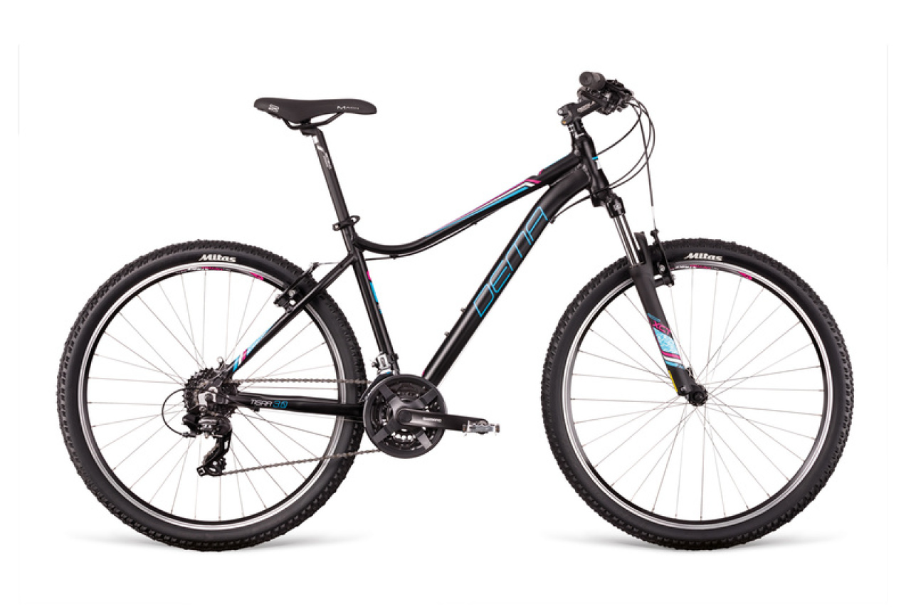 Dema TIGRA 3.0 Dámsky horský bicykel na 27.5 palcových kolesách vhodný na rekreačné jazdenie aj v teréne. Bicykel je vybavený komponentami SHIMANO. Predná odpružená vzduchová vidlica SR SUNTOUR XCE-P sa stará o plynulú a komfortnejšiu jazdu v teréne.