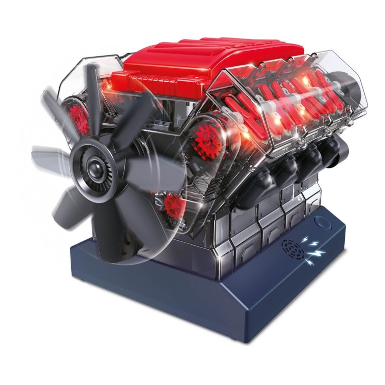 Skladací model spaľovacieho motora V8 s reálnymi mechanickými dielmi a zvukmi. Konštrukcia sa skladá z viac ako 270 dielov. Pripojenie k reťazovej reakcii ide o vzdelávaciu vedeckú sadu ktorá poskytuje užitočné znalosti o jednoduchej fyzike a je vhodná pre deti od 8 rokov. Budete prekvapení čo sa môžete naučiť, pretože táto aktivita vám umožňuje učiť sa realistickému poňatiu základnej fyzikálnej teórie Všetky hračky spĺňajú európske predpisy.