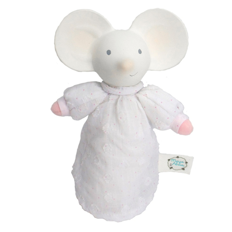 Pískatko / hryzátko myška Meiya.Hračka z kolekcie Meiya&Alvin je kombináciou pískatka z príjemne mäkkej certifikovanej bavlny a hryzátka z prírodnej gumy z kaučukového stromu Hevea. Kombinuje úžitok zvukovej stimulácie pískatka a gumennej časti, ktorá je ideálna pre deti, ktorým sa práve prerezávajú ...viac
