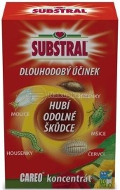 CAREO koncentrát je přípravek na ochranu rostlin účinkující proti savým a žravým škůdcům okamžitě jako kontaktní, ale i dlouhodobě systémový insekticid (cirkuluje v rostlině). Jeho účinná látka je obsažena i v nových přírůstcích. Koncentrát se aplikuje ve vodném roztoku na rostlinách jak venku, tak i uvnitř ve sklenících a zimních zahradách.Zatočí se všemi odolnými škůdci.Charakteristika:.Systémový insekticid.Učinná látka:.acetamiprid 5g/l.tj. (E)-N1-[(6-chloro-3-pyridyl)methyl] - N2 - kyano - N1 - methylacetamidin.Působení přípravku:.CAREO® koncentrát s kontaktním i dlouhodobým systémovým účinkem působí na larvy i dospělce savých a žravých škůdců. Účinná látka je vstřebávána listy rostlin a rozváděna po celé rostlině. Je také pak obsažena dokonce i v nových přírůstcích. Saví a žravý škůdci jsou účinnou látkou likvidováni jak při sání tak i při zasažení během aplikace.Příprava aplikační kapaliny:.Odměřené množství přípravku se vlije do nádoby postřikovače a doplní vodou na stanovený objem. Během přípravy aplikační kapaliny a při aplikaci je nutné účinné míchání.Dávkování:.> okrasné rostliny skleníkové (mšice, mery, červci, křísi, molice, třásněnky, svilušky, štítenky, nosatci, pilatky, vrtalky) 10 ml / 1 l vody / 16,7 m2 = při výšce rostlin do 50 cm / OL 0 dní (od začátku výskytu; max. 3x za vegetační sezónu).> okrasné rostliny skleníkové (mšice, mery, červci, křísi, molice, třásněnky, svilušky, štítenky, nosatci, pilatky, vrtalky) 10 ml / 1 l vody / 11,1 m2 = při výšce rostlin od 50 - 125 cm / OL 0 dní (od začátku výskytu; max. 3x za vegetační sezónu).> okrasné rostliny skleníkové (mšice, mery, červci, křísi, molice, třásněnky, svilušky, štítenky, nosatci, pilatky, vrtalky) 10 ml / 1 l vody / 8,4 m2 = při výšce rostlin nad 125 cm / OL 0 dní (od začátku výskytu; max. 3x za vegetační sezónu).> okrasné rostliny venkovní (mšice, mery, červci, křísi, molice, třásněnky, svilušky, štítenky, nosatci, pilatky, vrtalky) 5 ml / 0,5 l vody / 8,4 m2 = při výšce rostlin do 50 cm / OL 0 dní (od začátku výskytu; max. 3x za vegetační sezónu).> okrasné rostliny venkovní (mšice, mery, červci, křísi, molice, třásněnky, svilušky, štítenky, nosatci, pilatky, vrtalky) 5 ml / 0,5 l vody / 5,6 m2 = při výšce rostlin od 50 - 125 cm / OL 0 dní (od začátku výskytu; max. 3x za vegetační sezónu).Aplikační poznámka:.Vzhledem k množství druhů a odrůd okrasných rostlin se doporučuje před jejich provozním ošetřením ověřit citlivost v daných podmínkách na malé části porostu nebo na menším počtu rostlin.Antirezistentní strategie:.K zabránění vzniku rezistence neaplikujeme tento přípravek nebo jiný, který obsahuje účinnou látku typu neonikotinoidu, po sobě bez přerušení jiným insekticidem s odlišným mechanismem účinku a ne více než 3x za vegetační sezónu.Doporučení a možná rizika ve vztahu k životnímu prostředí:.Přípravek nevyžaduje klasifikaci z hlediska ochrany ptactva, vodních organizmů, suchozemských obratlovců, včel, necílových členovců kromě včel, půdních mikroorganismů, půdních makroorganismů.Upozornění:.Tyto údaje jsou pouze informativní. Prodejce neručí za škody způsobené nesprávným použitím přípravku.