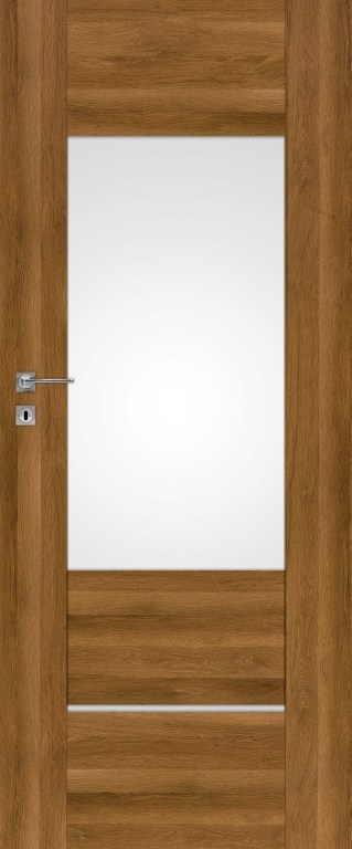 Interiérové dvere Dre Auri 3.Konštrukcia krídla.Rámová konštrukcia z MDF dosiek pokrytá povrchovou úpravou - CELL fóliou.Hrúbka krídla - 40 mm.Hrana - Technológia Standard - ostré hrany dverí.Presklenie v presklených krídlach.sklo o hrúbke 4 mm.na výber: Mat Dre (matné sklo), Decormat grafit, Decormat hnedý alebo Priehľadné sklo .POZOR! Ľavé dvere sú zrkadlovým odrazom pravých dverí.Povrchová úprava.Fólia CELL: Biela (štruktúra), Biela matná, Jaseň, Dub bielený ryfla, Dub zlatý ryfla, Orech tmavý ryfla, Dub sivý ryfla, Orech karamelový, Brest antracit, Brest tabak, Dub pieskový, Wenge tmavá, Sosna biela, Brest Sibírsky, Dub vintage, Orech karamelový, Dub toffi, Sivá štruktúrovaná, Čierna štruktúrovaná.Fólia 3D: Brest, Americký Orech, Eben, Dub poľský, Dub grand.Dostupné prevedenia.jednokrídlové dvere .dvojkrídlové dvere.nástenné posuvné jednokrídlové dvere.nástenné posuvné dvojkrídlove dvere.posuvné jednokrídlové dvere do puzdra.posuvné dvojkrídlové dvere do puzdra.bezfalcové dvere.Krídlo zahŕňa.Zámok - BB zámok, WC zámok, PZ zámok, Bez otvoru, Hákový zámok (podľa vlastného výberu) alebo Bez hákového zámku.Závesy (Pánty) - SK norma = 3ks alebo PL norma = 3ks.Výhody.moderný dizajn.zámok a závesy bez doplatku.možnosť výberu aj PL normy, ak nieje otvor pripravený na SK normu.matné sklo decormat v cene dverí.