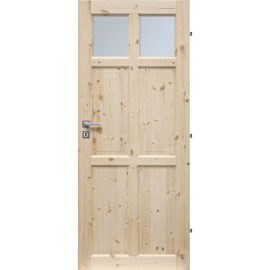 KONSTRUKCE Kazetové masivní dveře z borovice: Sukové provedení: dveře jsou vyrobeny z borovicového dřeva se suky. Dýhované provedení: plocha dveří je navíc dýhovaná přírodní borovici bez suků, která má tloušťku 1,5 mm. Šíriky rám až 12 cm zaručí větší pevnost dveří a delší životnost. Pevný kolíkový spoj a na perodrážku - zvýšená pevnost dveří. Falcové polodrážkové provedení. Profilované kazety o tloušťce 18 mm mají frézování po obvodu, což tvoří klasický styl dveří. Estetické zasklení bez použití rámečků přidává dveřím luxusní vzhled. Povrchová úprava: přírodní dřevo. U vybraných modelů: olej, OLD TOWN olej, kartáčovaný OLD TOWN olej. Dveře jsou vhodné pro další nátěr. Sukové provedení může obsahovat drobné vady dřeva v podobě škrábanců nebo vytlačení na povrchu, proto před lakováním doporučujeme dveře přebrousit jemným brusným papírem. Dýhované provedení bez laku před nátěrem je třeba přebrousit jemným brusným papírem. KOVÁNÍ Tří stříbrné panty šroubovací s horizontální regulací. Klasický zámek na dozický klíč, na cylindrickou vložku, WC zámek, úsporný zámek (jen klika). PROSKLENÍ 4 mm tvrzené matné sklo v ceně dveří. Změna skla na KŮRA ČIRÁ 400,- Kč bez DPH.