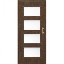 KONSTRUKCE křídlo vyrobené v deskové technologii STANDARD s povrchovou úpravou fólie FINISH nebo GREKO masivní rám z plné MDF desky pokrytý dvěma HDF deskami stabilizační výplň "voština” nebo plná HOMALIGHT hrana dveří vyrobená v bezfalcovém provedení (rovná) další technické informace PROSKLENÍ nejpopularnější sklo mlečné DECORMAT v ceně dveří Cena jeDnokřídlých dveří obsahuje hliníkovou kolejnici spolu s krycí lištou v barvě křídla o délce:– 214,5 cm pro křídlo 100 – 209,5 cm pro křídlo 90 – 191 cm pro křídlo 80 – 161 cm pro křídlo 70, 60 dorazový hranol Pozor: Garnýž pro dvoukřídlé dveře PD2S neobsahuje dorazový hranolDostupné konfigurace stěnových posuvných systémů dveře + garnýž vč. dorazového hranolu dveře + garnýž vč. dorazového hranolu + zárubeň typu tunel (slepá).