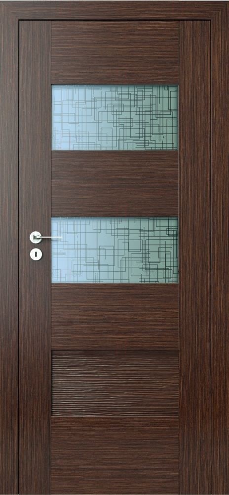 Interiérové dvere PORTA DOORS - NATURA KONCEPT.Dostupné prevedenia:.jednokrídlové dvere .dvojkrídlové dvere.posuvné jednokrídlové dvere.posuvné dvojkrídlove dvere.bezfalcové dvere.Povrchová úprava:.Prírodná dýha Natural Select - Dub, Orech tmavý.Prírodná dýha Natural Standard - Dub 1.Prírodná dýhaNatural Satin - Tabacco, Mocca, Nero, Dub svetlý, Dub Winchester, Dub hnedý, Biela (štruktúra dreva).Výplň krídla: .rámová konštrukcia dreveného krídla je zhotovená z kvalitných drevených materiálov, odolných proti prehnutiu, a to použitím viacvrstvovej lepenej drevenej konštrukcie.Hrúbka krídla - 40 mm.Hrana - Technológia Standard - rovné hrany dverí.Presklenie v presklených modeloch - matné tvrdené sklo.Krídlo zahrňa:.Zámok - BB zámok, WC zámok, PZ zámok, Bez otvoru, Hákový zámok, Bez hákového zámku (Podľa vlastného výberu).Závesy (Pánty) - SK norma = 3ks, PL norma = 2ks.Plusy:.zámok a závesy bez doplatku.možnosť výberu aj PL normy, ak nie je otvor pripravený na SK normu.moderný dizajn.Mínusy:.Váha dverí.