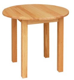Jednoduchý, pevný, okrúhly stôl so štyrmi nohami, z kvalitného borovicového masívu. Dostupný v rôznych moreniach – dub, jelša, čerešňa či orech za príplatok 10% z ceny alebo v bielom prevedení za príplatok 30% z ceny. Po individuálnej dohode vieme upraviť aj výšku stola. Dodávame v demontovanom stave. Farba produktu na obrázku: prírodná borovica ošetrená povrchovým ekologickým lakom.