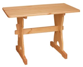 Jednoduchý, 60cm široký tradičný stôl s dvomi nohami z kvalitného borovicového masívu. Dostupný v rôznych rozmeroch a moreniach – dub, jelša, čerešňa či orech za príplatok 10% z ceny alebo v bielom prevedení za príplatok 30% z ceny. Rozmery je možné po individuálnej dohode ešte upraviť. Dodávame v demontovanom stave. Farba produktu na obrázku: prírodná borovica ošetrená povrchovým ekologickým lakom.