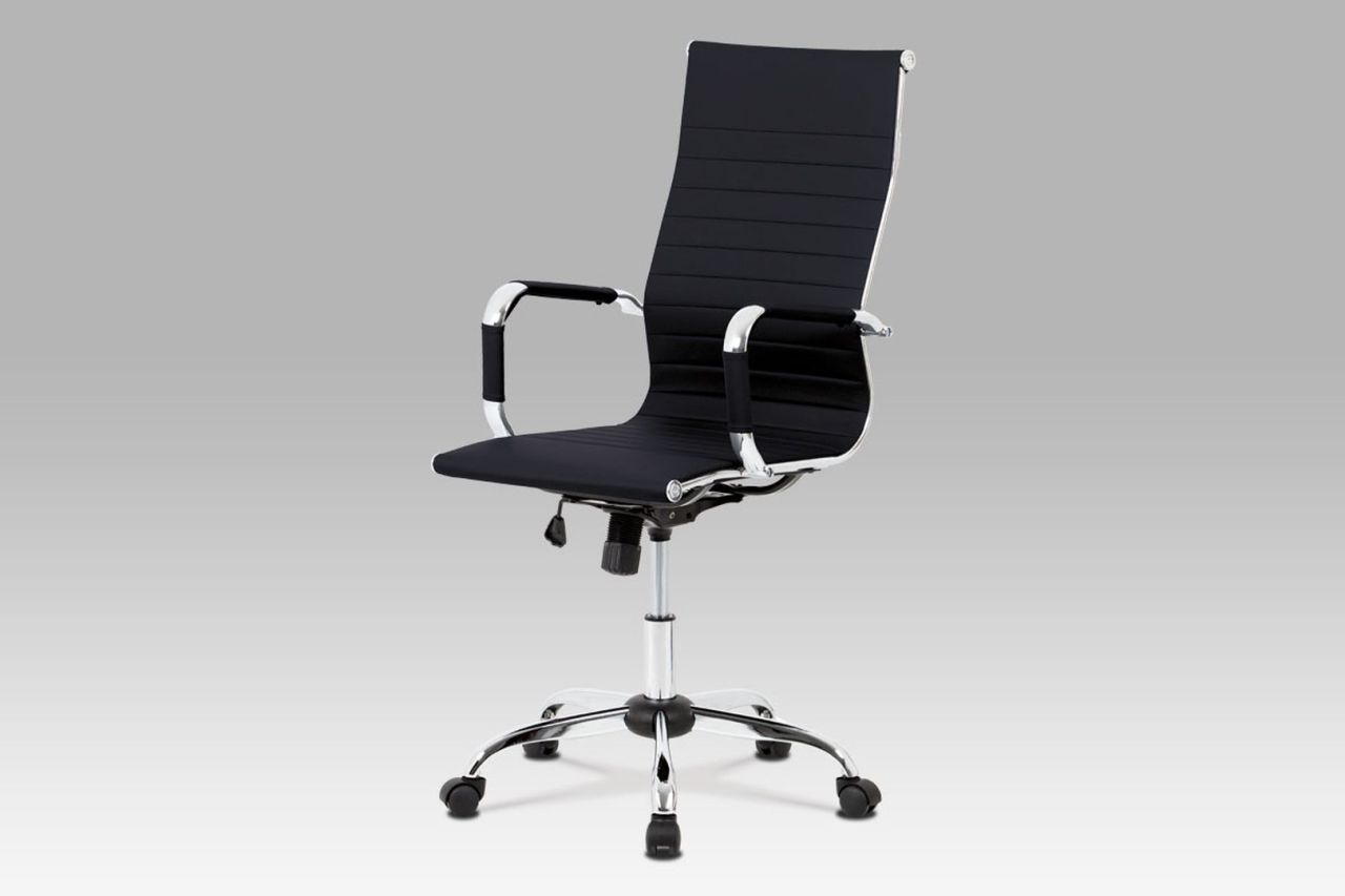 Štýlová a super moderná kancelárska stolička, ktorá Vás svojím úchvatným dizajnom jednoducho dostane a nepustí. Operadlo i sedadlo sú čalúnené jemnou ekokožou čiernej farby s elegantným prešitím. Ruky si môžete pohodlne oprieť o pevné celokovové podrúčky s chrómovou úpravou, ktoré sú čalúnené čiernou ...viac