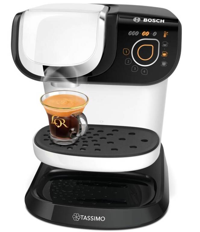 kapsulový kávovar • espresso, caffé crema, filtrovaná káva, latte macchiato, cappuccino, horúca čokoláda, čaj • príkon 1 500 W • tlak čerpadla 3,3 bar • odnímateľná nádržka na vodu 1,3 l • 3 stupne nastavenia vlastností nápoja • technológia INTELLIBREW™ • technológia filtrácie vody BRITA MAXTRA+ • digitálny indikátor výmeny patróny • systém prietokového ohrievača a predsparenia • automatický čistiaci a odvápňovací program • výškovo nastaviteľný podstavec • automatické vypnutie • dotykový panel • kompatibilný s kapsulami značky Carte Noire, Jacobs Krönung, Milka • balenie obsahuje 1 patrónu BRITA MAXTRA+ • rozmery 29 × 23 × 32,5 cm • hmotnosť 3,5 kg Kapsulový kávovar Bosch Tassimo My Way TAS6504 ponúka širokú ponuku teplých nápojov, akými sú silné espresso, caffé crema, voňavé cappuccino, klasické aj karamelové latte macchiato alebo horúcu čokoládu a čaj, na prípravu ktorých prístroj využíva kapsuly značky Carte Noire, Jacobs Krönung a Milka. Panel s dotykovými tlačidlami zaisťuje intuitívne a pohodlné nastavenie parametrov, zobrazenie informácií o aktuálnom stave prístroja aj indikáciu pri doplňovaní vody alebo odstraňovaní vodného kameňa. Vyberateľný a výškovo nastaviteľný podstavec na šálky s nerezovou mriežkou je vhodný na všetky veľkosti hrnčekov a pohárov. Medzi ďalšie prednosti kávovaru patrí odnímateľná nádržka na vodu s objemom 1,3 l, možnosť uloženia 4 obľúbených nastavení nápojov, digitálny indikátor výmeny patróny BRITA MAXTRA+ aj systém prietokového ohrievača. Revolučná technológiaKávovar Bosch je vybavený patentovanou technológiou INTELLIBREW™, vďaka ktorej prístroj rozozná a uvarí nápoj podľa údajov, ktoré si načíta z čiarového kódu na kapsuly. Milovníci horúcich nápojov ocenia unikátnu možnosť prispôsobenia nápoja - 3 stupne nastavenia intenzity, veľkosti a teploty nápoja. Technológia filtrácie vody BRITA MAXTRA+ zaistí znížený obsah chlóru a vodného kameňa a vďaka tomu aj lepšiu chuť nápojov. Kľúčové vlastnosti: