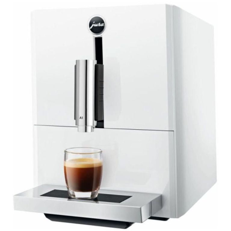 Kompaktná elegancia v podobe JURA A1JURA A1 predstavuje ideálny jednošálkový kávovar pre kávových gurmánov a tých, ktorí si obstarávajú svoj prvý kávovar. Je navrhnutý tak, aby bol svojimi rozmermi čo najmenší, a mohol sa tak pohodlne zmestiť kamkoľvek vďaka svojmu ultra kompaktnému dizajnu.Mlynček AromaG3Zomelie zrnká kávy vždy priamo pred prípravou, čo zaistí zachovanie skvelej arómy. Máte možnosť nastavovať mlynček s cieľom voľby správnej hrúbky mletia kávy podľa svojich predstáv. Konzistencia mletej kávy má vplyv na čas prietoku vody kávovým koláčom, čiže na takzvanú dobu lúhovania. Čím je mletá káva jemnejšia, tým intenzívnejšia býva jej chuť. Zdokonalili sa rezné uhly mlecích kužeľov mlynčeka AromaG3. Inžinieri spoločnosti JURA pritom dokázali výrazne zvýšiť jeho výkonnosť. Vo výsledku tak teraz získate dokonalú arómu kávy s neobmedzenou plnosťou odtieňov už za polovičný čas mletia.Extrakčný proces (P.E.P.®)Lúhovacia jednotka predstavuje ústrednú časť plne automatického kávovaru. Variabilná lúhovacia jednotka JURA má kapacitu od 6 g až 16 g pomletej kávy. Umožňuje vám to prispôsobiť si pripravovanú kávu svojim vlastným chuťovým záľubám. Pulzný extrakčný proces sa využíva na dosiahnutie maximálnej arómy aj pri veľmi malých kávových špecialitách, ako je espresso alebo ristretto. Voda je pritom cez pomletú kávu pretláčaná v krátkych, ale prudkých intervaloch, čo vedie k optimalizácii času extrakcie.Kávová špecialita behom chvíľkyVýsledkom minimalizovaného ovládacieho panelu je maximálny pôžitok: jeden dotyk stačí. Je možné si trvale naprogramovať tri rozdielne veľkosti šálok a vybrať si z dvoch stupňov sily kávy. Automatický režim úspory energie s naprogramovatelným časom vypnutia a patentovaným tlačidlom nulovej energie zaistí vysokú energetickú účinnosť.Ďalšie parametre + údržbaTlak jeho čerpadla je 15 barov a príkon 1450 W. Zásobník na vodu ponúka 1,1 litrovú kapacitu a kapacita zásobníka na kávové zrná je 125 gramov. Filtračný systém Claris Blue zaručí perfektnú kvalitu vody, pre čo najlepšiu chuť. Chráni tiež kávovar pred vodným kameňom a odstráni látky, ktoré by mohli nepriaznivo ovplyvniť chuť a vôňu vody (napríklad ťažké kovy alebo chlór).
