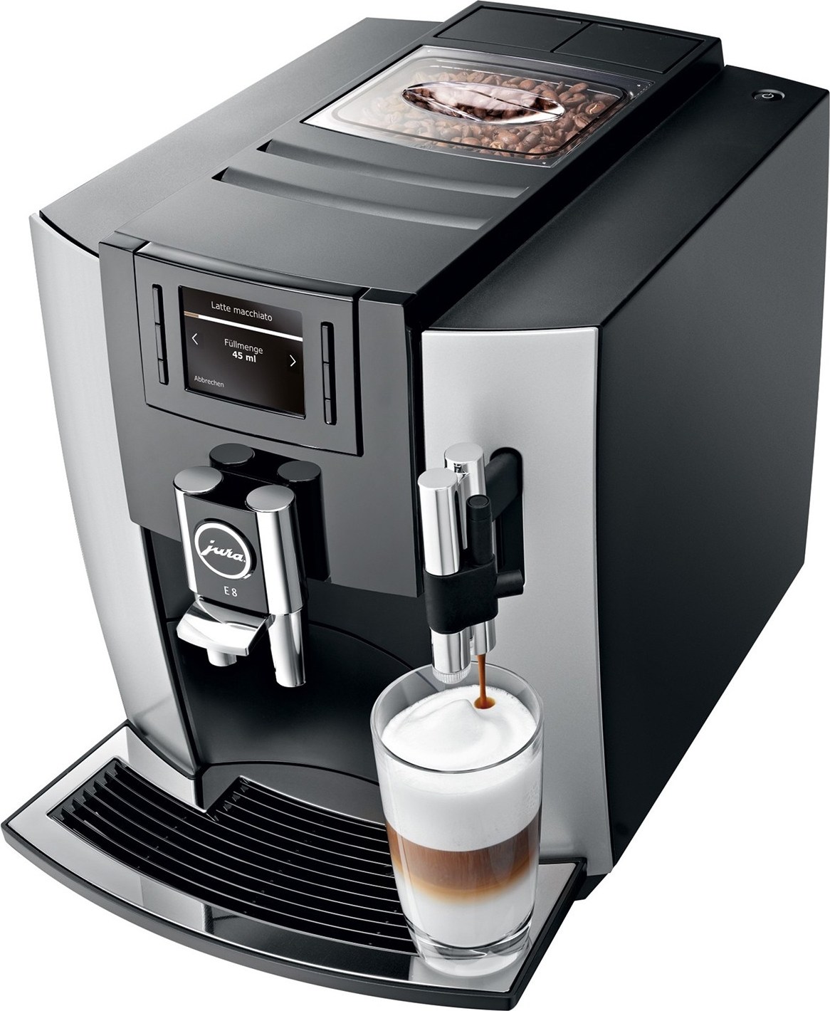JURA E8 - revolučný OneTouch kávovar od JURA! Teraz k dostaniu aj v bielej!!!JURA E8 je najúspešnejší plne automatický model kávovarov JURA v celej histórii spoločnosti. Teraz prichádza s ešte jednoduchším použitím a so sofistikovanejším dizajnom a V BIELOM PREVEDENÍ. Nechajte sa okúzliť funkciou OneTouch cappuccino pre prípravu trendových mliečnych špecialít ako je latte macchiato, cappuccino alebo flat white. O prípravu tých najchutnejších variácií káv sa stará impulzný extrakčný proces (P.E.P.®), ktorý optimalizuje dobu extrakcie a zabezpečuje tú najvyššiu úroveň arómy i pre krátke kávové špeciality. .V farebnom prevedení Piano White sa bude tento prémiový kávovar skvele vynímať v moderných interiéroch. Zladiť k nemu môžete aj chladničku na mlieko JURA Cool Control 1 liter biela.Nový JURA E8 je vybavený tými najmodernejšími JURA technológiami, vďaka ktorým si pripravíte chutnú kávu i u Vás doma. I preto je ideálny pre všetkých, ktorí si chcú vychutnať čiernu kávu i mliečne špeciality jednoducho jedným stiskom. Funkčné tlačidlá sú umiestnené na prednej strane prístroja vedľa prehľadného farebného displeja. Vďaka tomu je ovládanie kávovaru i výroba nápojov maximálne jednoduchá a intuitívna. JURA E8 dokonca dokáže pripraviť dve espressa, dve kávy alebo dve ristretta súčasne a to vďaka dvojitému výtoku. Ovládanie i menu kávovaru je samozrejme v slovenskom jazyku a je urobené s prehľadnými animáciami, ktoré Vás informujú o priebehu výroby nápoja alebo o čistení.Novo je JURA E8 vybavený aj možnosťou vzdialeného pripojenia Vášho smartfónu a kávovaru pomocou JURA Smart Connector. Ľahko tak urobíte zmeny v nastavení prístroja, skontrolujete štatistiky alebo nastavíte údržbu kávovaru. Všetko prehľadne a pohodlne. Stačí byť v dostatočnej vzdialenosti od vášho prístroja. Ide o voliteľné príslušenstvo kávovaru.Kávovar JURA E8 je k dispozícii aj vo farebnom prevedení JURA E8 Platinum.Pre prípravu tej najjemnejšej mliečnej peny.Kávovar JURA E8 je vybavený novou tryskou G2, ktorá je vyrobená z tých najkvalitnejších materiálov a špeciálne pre prípravu kávových špecialít s jemnou mliečnou penou. Vďaka tomu si i doma dokážete vyrobiť naozaj excelentné cappuccino, ktoré si celkom určite zamilujete.Prepracovanejší dizajn než kedykoľvek predtým.Nádržka na vodu s dizajnom drážky zdôrazňuje prepracovanosť a zmysel pre detail, ktorý sa pri tomto kávovare prejavuje nielen v použitých technológiách, ale zároveň i v drobnostiach typu kovovej rukoväte na nádržke alebo v chromovanej odkladacej podložke. Poteší tak nielen chuťou pripravenej kávy, ale zároveň svojím prepracovaným vzhľadom.Tajomstvo výnimočnej kávy spočíva v príprave.JURA doviedla proces výroby espressa k takmer 100 % dokonalosti, čo umožňuje modelu JURA E8, aby sa dostal pri výrobe espressa na úroveň profesionálneho baristu.Kovový mlynček AromaG3 namelie kávu rýchlo, ticho a šetrne a vďaka tomu si káva zachováva svoju špecifickú arómu. Silu možno nastaviť v ôsmich krokoch presne podľa individuálnych požiadaviek každého užívateľa. Sparovacia jednotka má kapacitu 5 až 16 gramov a zabezpečuje optimálne podmienky pre preparenie kávy za všetkých okolností. Impulzný extrakčný proces (P.E.P.®), vyvinutý a patentovaný priamo spoločnosťou JURA, optimalizuje dobu extrakcie, zlepšuje arómu, penu i celkovú chuť výsledného nápoja a umožňuje plne rozvinúť chuť kávy. Samozrejmosťou je i nastavenie teploty preparenia podľa použitej kávy.Inteligentný vodný systém (I.W.S.®) pre automatickú detekciu filtra.Vodné filtre CLARIS Smart poskytujú vodu dokonalej kvality pre najlepšiu možnú chuť kávy. Chránia tiež kávovar pred vodným kameňom a odstraňujú z vody látky, ktoré by mohli mať negatívny vplyv na chuť a arómu (ako sú ťažké kovy alebo chlór). Aby bolo možné maximálne využiť kapacitu filtra, vyvinula spoločnosť JURA funkciu inteligentného vodného systému (I.W.S.®). Filtračná patróna a kávovar sú bezdrôtovo spojené technológiou RFID (Radio-frequency Identification). Filter je detekovaný automaticky. Použitie filtra nebolo nikdy jednoduchšie a spoľahlivejšie.Vodné filtre JURA CLARIS nielen zabezpečia výbornú chuť kávy, ale zároveň sa o Váš kávovar starajú.Perfektná hygiena.Údržba tohto moderného automatického kávovaru je rovnako jednoduchá ako príprava lákavých kávových špecialít. Stiskom tlačidla možno spustiť integrované programy preplachovania a čistenia, ktoré sa starajú o dokonalú hygienu prístroja. Výtok na mlieko možno vkladať do umývačky riadu. Absolútna hygiena a dokonalá mliečna pena sú vždy zabezpečené.Súčasťou balenia je nádoba na čistenie mliečnych ciest. Špeciálne navrhnutá dvojkomorová nádoba maximálne uľahčuje proces čistenia. Stačí naplniť, pripojiť a spustiť čistiaci program. Čistenie mliečnych ciest trvá približne 2 minúty. Jeho priebehom Vás krok po kroku vykonáva informácie na farebnom displeji. Nádobku možno umývať v umývačke riadu. .Hlavné prednosti kávovaru JURA E8:.mlynček AromaG3 pre dokonalé, rýchle a k aróme šetrné pomletie VŽDY Z ČERSTVÝCH kávových zŕn.Intelligent Pre Brew Aroma System (I.P.B.A.S.©) pre prípravu 2 čiernych kávových špecialít naraz .impulzný extrakčný proces (P.E.P.®) pre dokonalé preparenie kávy (platí i pre krátke kávové špeciality ako je espresso a ristretto).CLARIS Smart a inteligentný vodný systém (I.W.S.®), ktoré zabezpečujú dokonalú filtráciu presnej dávky vody a výmenu podľa skutočného používania, kávovar vďaka týmto filtrom nie je potrebné odvápňovať.veľký farebný displej v slovenskom jazyku.technológia jemnej peny.vysoký výtok na mliečne 