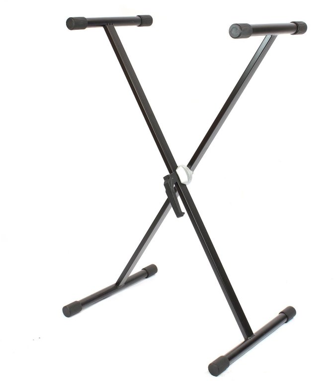 Hliníkový klávesový stojan v tvare písmena X, vhodný pre všetky bežné typy keyboardov. Výškovo nastaviteľný. Patentovaný rýchloupínací systém CROCODILE pre okamžitú zmenu polohy, pogumované kontaktné plochy. Nastaviteľná výška v rozsahu 170-970 mm, maximálna záťaž 60 kg. Šírka horného ramena 39 cm. Čierna farba.