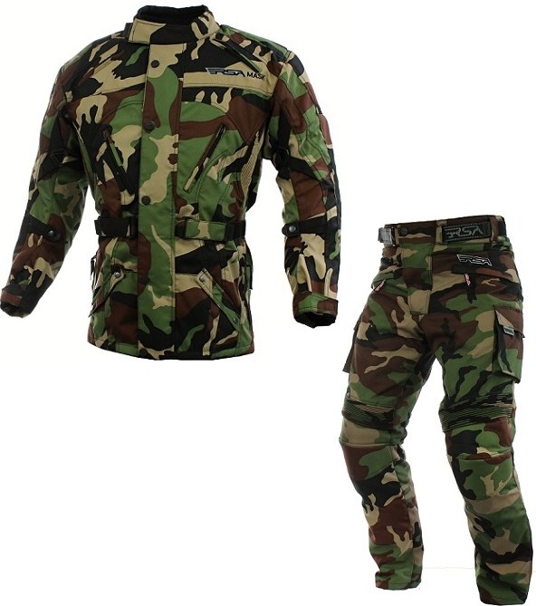 Bunda: Cestovná textilná moto bunda. Vrchný materiál polyesterová tkanina 600D. Švy bundy sú vytvorené špeciálnou technológiou. Zosilnený materiál na ramenách. Bunda obsahuje zimnú odopínateľnú vložku. Sťahovanie v páse. Pásky na rukávoch pre úpravu šírky. Možnosť úpravy obvodu zápästia pomocou suchého zipsu. Zips v oblasti zápästia umožňuje ľahšie obliekanie bundy. Mäkký chrbtový chránič. Vyberateľné CE chrániče na ramenách a lakťoch. Hlavný zips chránený proti vniknutiu vody pomocou tzv. Systému labyrint. Zips pre spojenie s nohavicami. 4 vonkajšie a 4 vnútorné vrecká. Nohavice: Textilné nohavice vhodné nielen na motorku, ale aj na enduro a ATV. Vrchný materiál polyesterová tkanina 600D.Švy nohavíc sú vytvorené špeciálnou technológiou. Vyberateľné chrániče kolien a bokov. Podšívka: ľahká, sieťovaná. Odnímateľná termo vložka. Zosilnený materiál v oblasti sedu. Stretch materiál nad kolenami a v oblasti bedier pre väčšie pohodlie pri sedení. Možnosť rozšírenia nohavíc v dolnej časti pomocou zipsu. Zips pre možnosť spojenia nohavíc s bundou. 4 vonkajšie vrecká (dve vrecká majú nepremokavé zipsy). Nohavice so sťahovaním v páse sa zapínajú pomocou cvoky a zipsu. Po spojenie bundy a nohavíc zipsom budete mať pohodlnú a bezpečnú textilnú kombinézu.