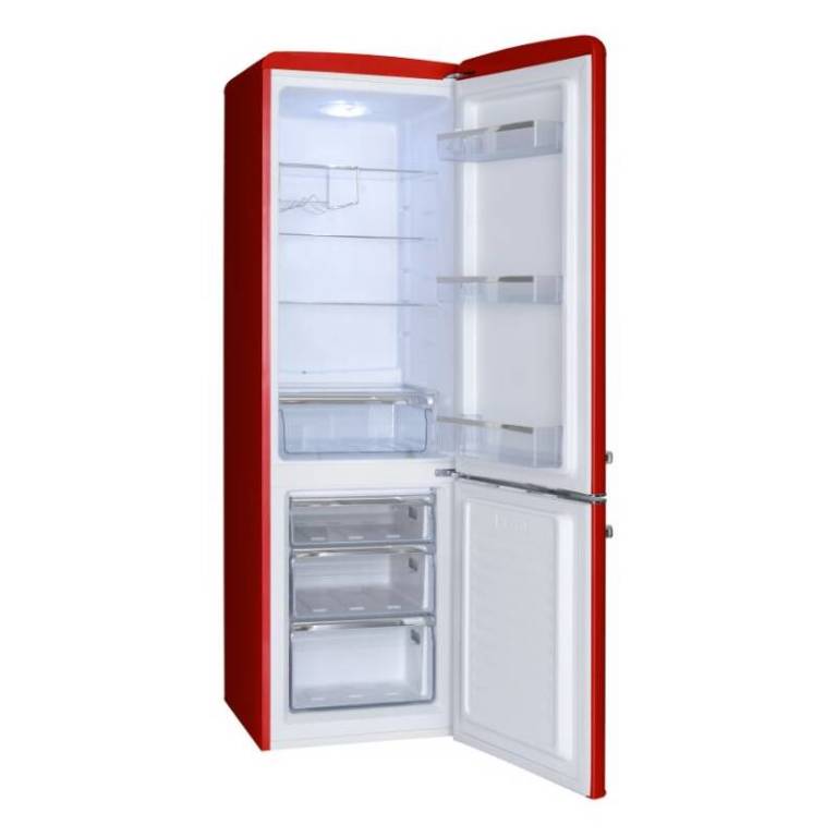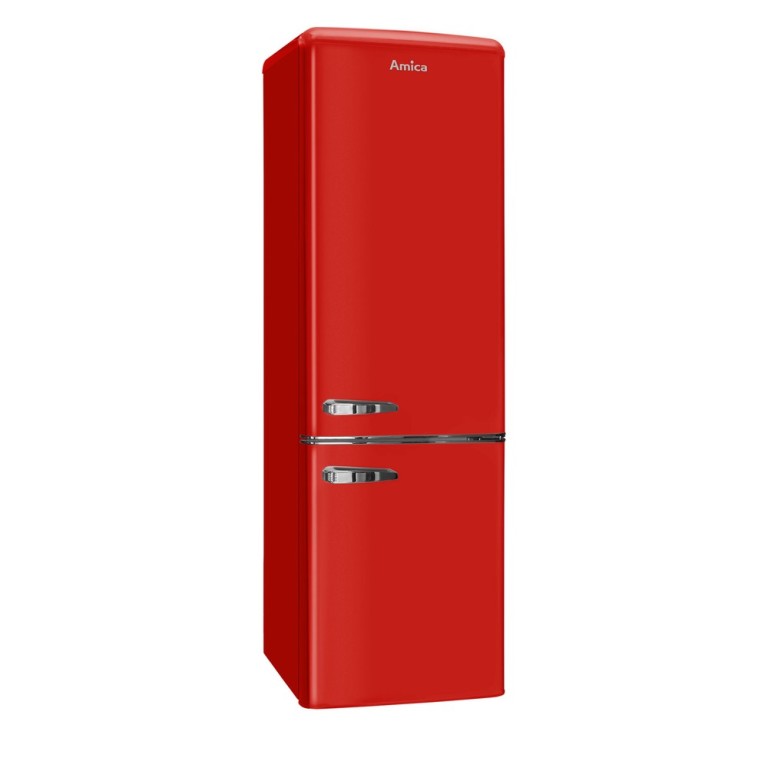 Amica KGCR 387100 Rchladnička s mrazničkou • výška 181 cm • objem chladničky 181 l / mrazničky 63 l • energetická trieda E • systém automatického rozmrazovania chladničky • mraziaca kapacita až 4 kg za 24 hodín • zásuvka na ovocie a zeleninu • polica z tvrdeného skla • hlučnosť 40 dB V × Š × H: 181 × 55 × 60 cm Voľne stojaca kombinovaná chladnička s mrazničkou Amica KGCR 387100 R zabezpečí optimálne podmienky na skladovanie a zachovanie čerstvosti vašich potravín. Na prvý pohľad vás zaujme predovšetkým svojím retro dizajnom v červenej farbe. Poteší vás tiež vysokou úspornosťou, chladnička patrí do energetickej triedy E, celkový úžitkový objem predstavuje 244 l. Efektívna a úsporná chladničkaV chladiacej časti s objemom 181 l nájdete štyri police, z ktorých tri sú výškovo nastaviteľné, transparentnú zásuvku na ovocie a zeleninu, držiak na fľaše a na dvierkach sa nachádzajú tri priehradky. Veľkou výhodou spotrebiča je automatické rozmrazovanie chladiacej časti, oceníte tiež praktické LED osvetlenie. V spodnej časti sa nachádza mraznička s úžitkovým objemom 63 l, ktorú tvoria tri zásuvky. Tie disponujú veľkou kapacitou a zabezpečujú pohodlný prístup k uloženým potravinám. Mraznička dokáže zamraziť 4 kg potravín za 24 hodín, akumulačná doba pri výpadku energie je až 8 hodín. |