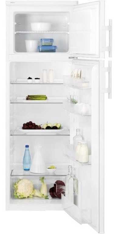 KOMBINOVANÁ CHLADNIČKA EJ2801AOW2 Popis produktu: Čistý objem mrazničky: 50 l Čistý objem chladničky: 215 l Automatické odmrazovanie chladiacej časti Osvetlenie mrazničky: Osvetlenie chladničky: 1, žiarovka Poličky chladničky: 3 plnej šírky, sklenené s lištou Poličky mrazničky: drôtené, 1 Zásuvky chladničky: ...viac
