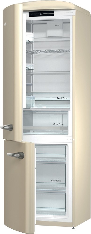 IONAIR S DYNAMICOOLING - Rovnomerné rozloženie teploty v priestore chladničkyPokročilý systém ventilátorov s dynamickým chladením, rovnomerne distribuuje ionizovaný vzduch a vyrovnáva teplotu v celom priestore chladničky. Vzduch navyše obohatený o záporné ióny napodobňuje prirodzenú mikroklímu, ktorá udržiava jedlo svieže po dlhšiu dobu. Okrem toho v chladničke neexistujú žiadne teplotné rozdiely, takže môžete ktorúkoľvek potravinu umiestniť na ktorej koľvekpolici.Chladnička, ktorá rozozná vaše zvykyTento šikovný systém bol navrhnutý, aby udržiaval optimálnu teplotu v chladničke bez ohľadu na to, ako často ju otvárate. Pri otvorení chladničky sa teplota náhle zvýši a potraviny sú tak vystavené teplotnému šoku, v dôsledku čoho sa rýchlejšie kazia. Chladnička neustále monitoruje a analyzuje spôsob, akým ju používate. Takto vie predpovedať, kedy otvoríte chladničku a predtým, ako tak urobíte, zníži teplotu o 1 alebo 2 °C, čím udržiava stabilnú teplotu a zaručí, že potraviny ostanú čerstvé a plné živín.Pre vysoké ako aj nízke fľašeObzvlášť praktický mechanizmus, ktorý umožňuje pohyb políc smerom hore a dolu.Dobre usporiadaná a úsporná chladničkaEnergeticky úsporné príslušenstvo vo forme LED pásu má výrazne dlhšiu životnosť a spotrebuje menej energie.Čerstvé ako priamo z prírodyZásuvka s najnižšou teplotou v chladničke je ideálna na uchovávanie mäsa, rýb, ovocia a zeleniny. Udržiava čerstvosť, arómu, farbu a chuť potravín dlhšiu dobu.Rýchle zmrazenieFunkcia vo vnútri mrazničky pre rýchle zmrazenie potravín, ideálne pri doplnení mrazáku po nákupe.VšeobecnýSkupina výrobkov: Chladnička s mrazničkouKonštrukčný typ: Voľne stojaciProduktová línia: Gorenje Retro CollectionEnergetická trieda: A++Umiestnenie mraziaceho oddelenia: DoleFarba spotrebiča: Slonová kosťMateriál dverí: PlastovýOtváranie dvierok: ĽavéPočet dverí: 2Typ základne: 2 pevné/2 nastaviteľné nožičkyKlasifikácia mrazničky počtom hviezdičiek: 4Triedy klímy:SubtropickáTropickáSubnormálnaNormálnaÚčinnosťNetto objem: 324 lBrutto objem: 326 lObjem chladničky: netto: 227 lObjem chladničky: brutto: 229 lObjem mrazničky: netto: 97 lObjem mrazničky: brutto: 97 lMraziaca kapacita: 4.5 kgSpotreba el. energie, kWh/24h: 0.641 kWhOdhadovaná ročná spotreba energie: 234 kWhSkladovací čas pri výpadku el. energie: 30 hOvládanieDisplej: LED displejOvládanie: Elektronické za dvierkamiIndikátor otvorených dverí: Bez alarmu alebo hlasovej správyPríliš vysoká teplota v mraziacom priestore: Bez alarmu, signálu alebo hlasovej správyNastaviteľná teplota mrazničky: NieRežim odmrazovania chladiaceho priestoru: AutomatickéRežim odmrazovania mraziaceho priestoru: ManuálneVlastnostiIonAir s DynamiCooling: ÁnoAdaptTech inteligentný systém riadenia: ÁnoFrostLess: ÁnoRegulátor vlhkosti: CrispZone s HumidityControl: veľká zeleninová zásuvka s reguláciou vlhkostiFastFreeze rýchle mrazenie: ÁnoÚsporný režim EcoMode: NieVýbavaDržiak na fľaše: Kovový držiakStojan na vajcia/forma na ľad: NieÚložný box na syr, maslo, vajcia, ľad: 1x MultiBox zásobník 3v1 (stojan na vajcia, box na aromatické potraviny, forma na ľad)Polica na fľaše vo dverách chladničky: 1 polica na fľaše s pevným držiakom fliaš zabraňujúcim pohybu fliašSimpleSlide police: ÁnoPolice vo dverách chladničky: 1 nastaviteľná polica1 horná nastaviteľná policaPotrebný prívod vody: NieVnútorný chladiaci ventilátor: ÁnoOsvetlenie: LED osvetlenie stropnéPočet nastaviteľných políc v chladničke: 2 ksSklenené police v chladničke: 4 ksStojan na vajcia: ŽiadnyNízkoteplotná zóna: Zásuvka FreshZoneVýbavaZásobník na ľad: NieZásobník na ľadové kocky: NieXXL SpaceBox zásuvka: ÁnoPriestor pre mrazenie: 3 zásuvkyVnútorné osvetlenie mrazničky: Bez osvetleniaSklenené police v mrazničke: 2 ksTechnické informácieSlot-in - možnosť zasunúť do kuchynského výklenku: Šířka 65 cmÚroveň hluku (max.): 40 dB(A)Počet kompresorov: 1 kompresorChladivo: R600APoloženie spotrebiča pri preprave: Je možnéPočet nezávislých chladiacich systémov: 1Šírka produktu: 600 mmVýška produktu: 1940 mmHĺbka produktu: 669 mmBrutto hmotnosť: 79.5 kgNetto hmotnosť: 75.5 kgŠírka zabaleného výrobku: 640 mmVýška zabaleného výrobku: 2000 mmHĺbka zabaleného výrobku: 770 mmElektrické napätie: 220 - 230 VPríkon: 120 W.