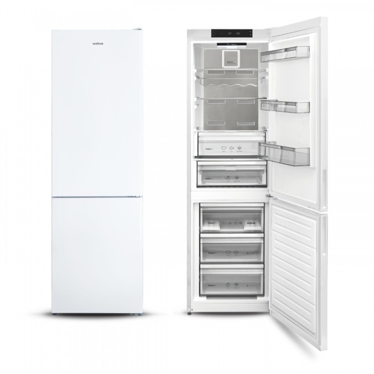 Chladnička s mrazničkou dole, energetická trieda E, klimatická trieda SN-T, objem chladničky 230 l, objem mrazničky 101 l, smer otvárania: doprava, počet políc chladničky 3, počet priehradiek mrazničky 3, počet chladiacich okruhov 2, biela farba, funkcie: total No Frost, 186×59.5×65 cm (V׊×H) Chladnička s mrazničkou Vestfrost zahŕňa chladiacu aj mraziacu časť a osvedčí sa preto v akejkoľvek domácnosti. Hovoríme o klasickom, voľne stojacom modeli, ktorý môžete rovno umiestniť do kuchyne bez nijakých väčších úprav interiéru. Pri inštalácii vám nebude robiť problémy smer otvárania, pánty má vpravo, ale dvierka sa dajú obrátiť. Chladnička VESTFROST VR-FB373-2H0H sa radí do energetickej triedy E. O klimatickej triede vypovedá skratka SN-T. Emisia hluku šíreného vzduchom potom predstavuje C. Dôležité parametre chladničky s mrazničkou VESTFROST VR-FB373-2H0H Spadá do energetickej kategórie E Chladnička má funkciu Total NoFrost bojujúcu s námrazou Chladnička má k.