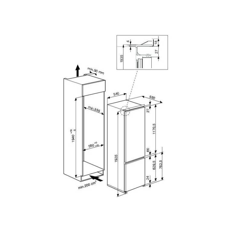 Vstavaná, 2m vysoká kombinovaná chladnička so samostatnou mrazničkou dole v energetickej triede A++ s elektronickým ovládaním. StopFrost - beznámrazové riešenie priestoru mrazničky. Bezpečné skladovanie mrazených potravín aj pri výpadku prúdu. Odolnosť nárastu teploty pri výpadku prúdu je 19 hodín. Praktické ...viac