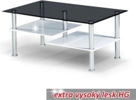 Konferenčný stolík, biela extra vysoký lesk HG/ sklo, SVEN.Urobte si radosť a potešte seba a svoju rodinu novým konferenčným stolíkom SVEN. Už na prvý pohľad vás očarí svojím zaujímavým prepracovaním. Vyrobený je z MDF vo farebnom prevedení biely extra vysoký lesk HG. Pevne stojí na štyroch oceľových nožičkách. Plát stola pokrýva dymové tvrdené sklo (6mm). Pochváliť sa môže otvoreným úložným priestorom, ktorý využijete na odkladanie časopisov, rozčítanej knihy alebo na ovládače.Materiál: MDF/tvrdené sklo/oceľFarba: biela extra vysoký lesk HG/dymové tvrdené skloRozmery (ŠxHxV): 90x55x42 cmS tvrdeným sklom (6mm)S policamiS úložným priestoromDodávané v demonte.Hmotnosť: 18 kg.